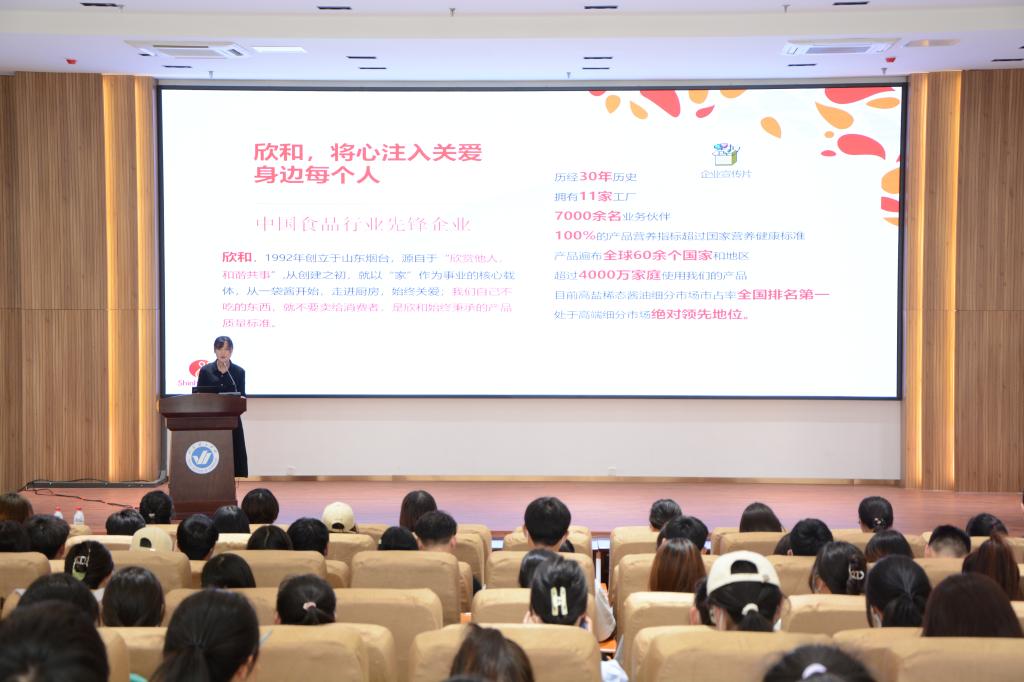 本次欣和企业“认知实习进校园”展示主要包括厨演车品尝和专家讲座两部分。厨演车美食品尝主要有酱油冰淇淋、醯官饮和有机蔬菜沙拉,并提供了多种欣和企业产品的展示。员工错时错峰有序参观展车及产品,进一步激发了同学们的学习兴趣与动力。专家讲座主要包括“欣和的故事”、“我们正在做的事情”以及“我们的事业发展”三个主题,使员工对所学专业建立感性认识,为进一步学习技术基础和专业课程奠定了良好基础。