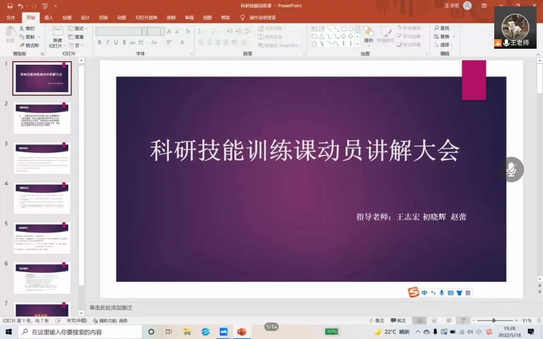 为培养同学们科学研究的意识以及自主查阅文献,提出问题并解决问题的能力。哈哈体育于5月23日晚召开线上科技技能训练课程动员大会。教学秘书初晓辉,科研秘书赵蕾出席会议,生工教研室主任王志宏担任主讲,2019级全体本科员工参加会议。