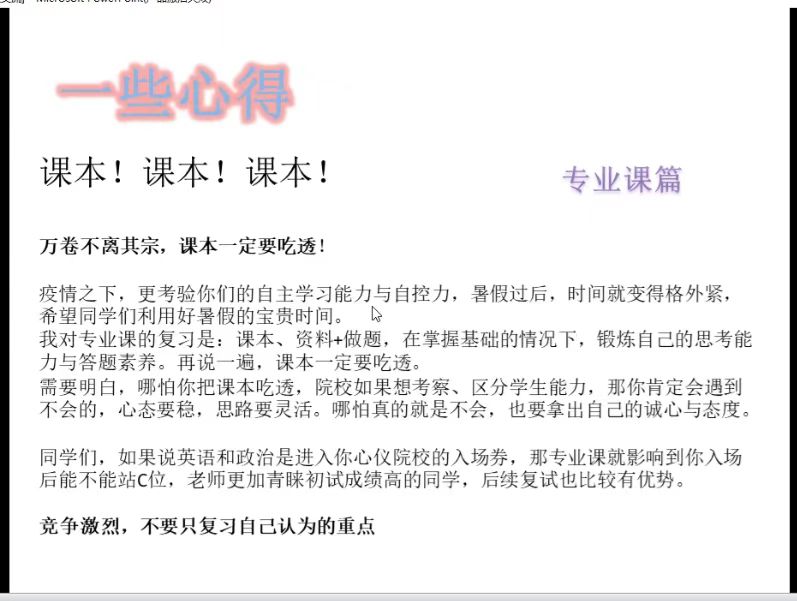 最后由宫善敏、张群力、孙玉竹同学做经验交流。三位同学从考研择校、择专业、各科目的复习等方面,详细为学弟学妹们分享了自己的方法和心得,分析了读研的必要性以及在备考中应该注意的问题。
