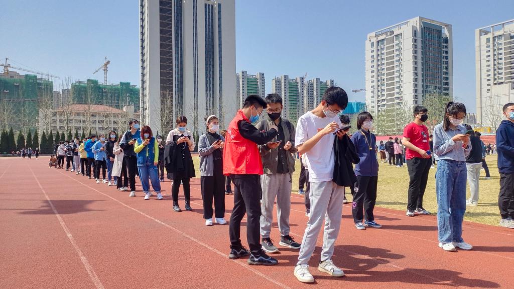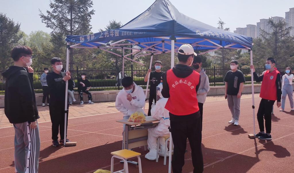 这支志愿者服务队由公司员工会执行主席、自律部、体育部以及部分普通员工组成。在集团核酸检测采样点,他们认真做好现场的秩序维护工作,耐心引导同学们提前打开二维码,并按照“一米线”的防控要求,引导大家排好队、依次进行核酸检测采样。