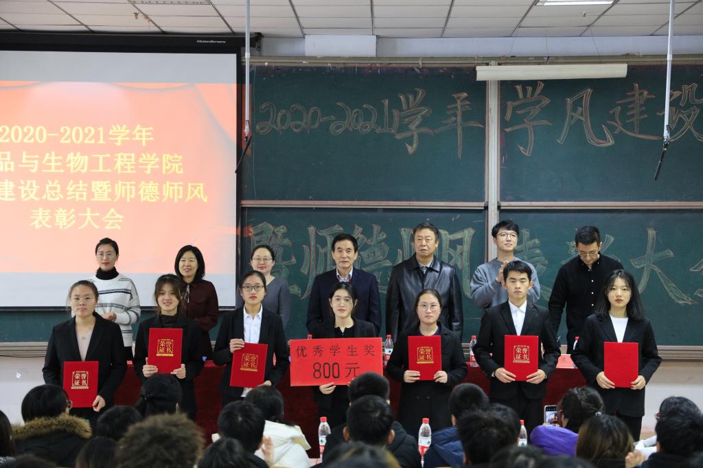 为表彰先进,树立典型,12月17日中午,哈哈体育于二教115隆重召开2020—2021学年学风建设总结暨师德师风表彰大会。经理、党总支书记金海珠,校督导、专业负责人王进军,党总支副书记赵蓓,教务办公室主任宫志娴,公司办公室主任韩明月,科研秘书赵蕾,食科教研室主任王晓君,食安教研室主任姜倩倩,生工教研室主任王志宏,高层次人才孙盛千,专业教师李静、秦红玉、王晋、王跃猛,获奖代表以及大一全体员工参加会议,大会由辅导员于小康主持。
