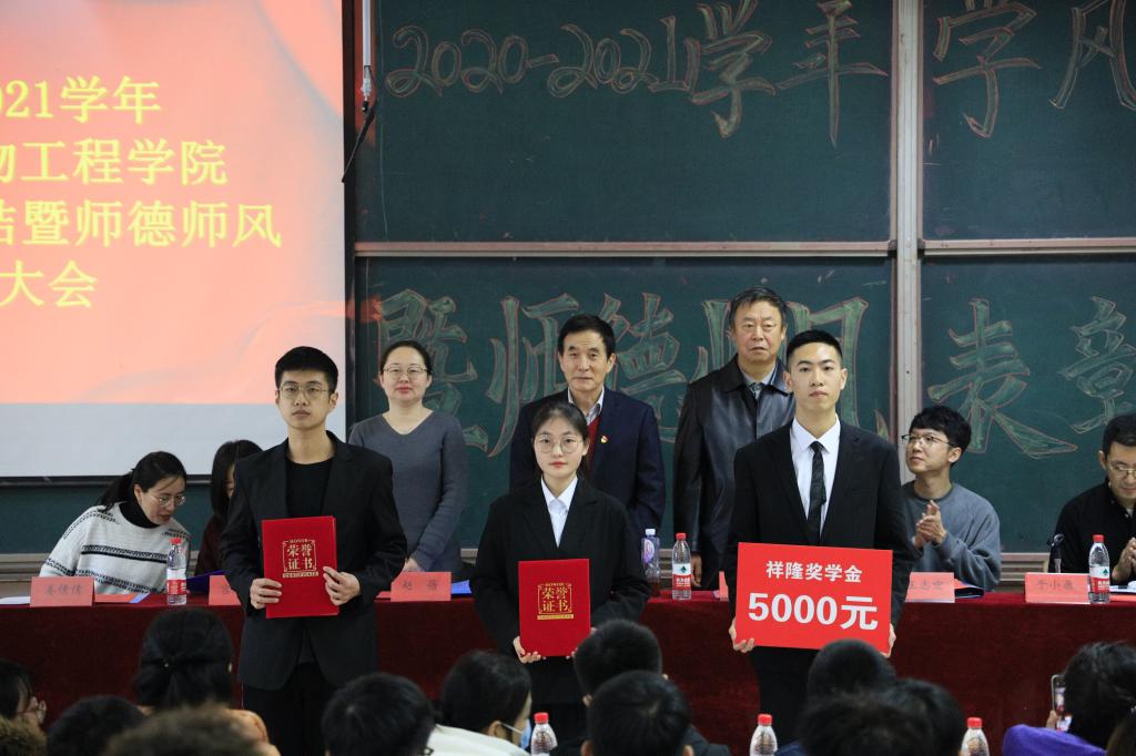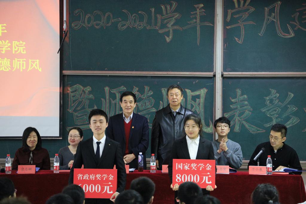 大会首先对公司第四届“最美教师”李静、“教书育人楷模”赵蕾进行了表彰。“最美教师”李静上台发言,分享了自己在教学以及班主任工作中的心得体会。随后,对国家奖学金、省政府奖学金、国家和省政府励志奖学金、祥隆奖学金、董事长奖学金等公司各类奖学金以及优良学风新星班、先进班集体进行了表彰。领导老师对获奖代表一一颁奖,希望受表彰的个人和集体珍惜荣誉、再创佳绩。接着,国家奖学金获得者詹梦燃同学分享了她在学习和工作中的收获与体会,鼓励大家珍惜韶华,发奋学习,努力工作,为公司、公司的发展积极贡献力量。先进班集体代表张嘉恒、林雪静分享了班级的经验做法,优秀的班集体离不开每一位同学的努力。随后,经理、党总支书记金海珠总结发言,他对获得表彰的师生表示祝贺,对一年来为公司发展作出贡献的全体师生表示感谢。希望大家都能向今天获表彰的师生学习,以他们为榜样。师德师风和学风建设始终是公司的重要工作,要常抓不懈。最后,学习部部长陆莹莹带领全体员工作诚信考试宣誓。