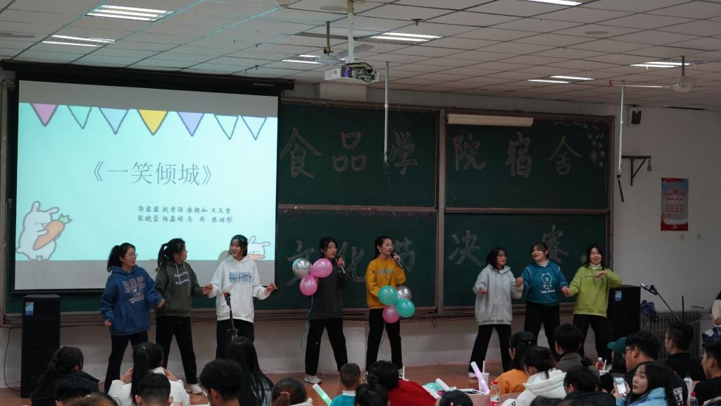为丰富校园文化生活,营造温馨和谐的寝室环境。11月26日晚,食品与生物工程公司于二教115举办“寓”你相遇,“宿”说青春为主题的宿舍文化节决赛暨颁奖典礼。团总支书记王晶,辅导员于小康,教师韩明月、宫志娴、初晓辉、王志宏、王晓君、赵蕾,团总支员工副书记柴天杨,员工会执行主席曹永鹏、付晓艳、胡雅雯、袁婧然及各部部长应邀参加。