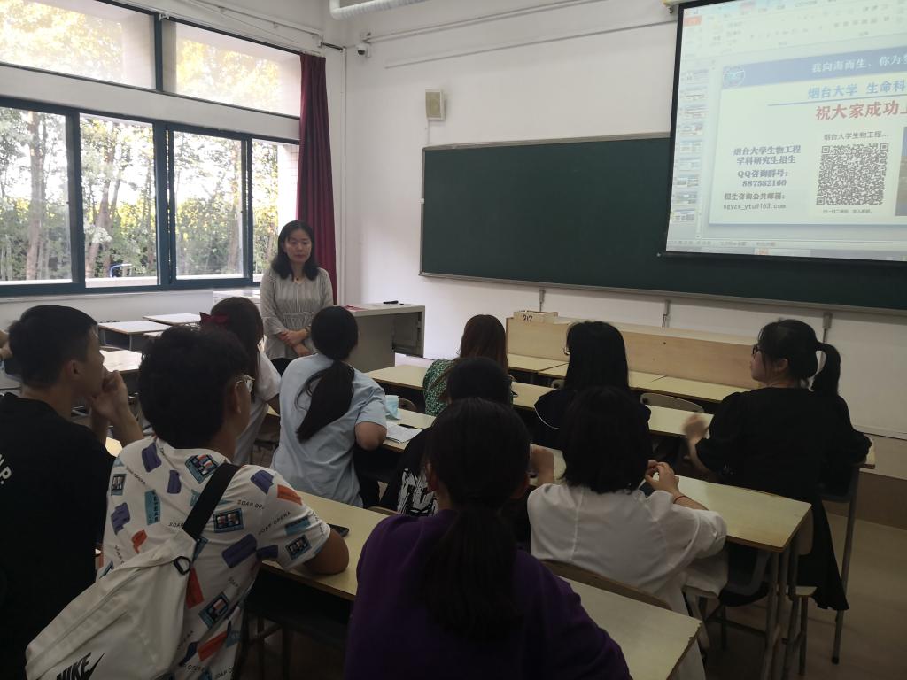 首先,邢荣莲教授介绍了烟台大学的发展历程,以及生物工程专业具备的优势条件和团队配备,突出生物工程专业人才培养和服务于地方的发展战略。接着,邢教授详细介绍了专业的设置,专业发展和就业背景,使同学们对专业方向的选择更加清晰,并提出在选择过程中应当注重自身兴趣和专业方向相结合。随后,针对员工关注的备考注意事项和调剂信息,邢老师也展开了详细讲解,包括院校录取人数、复试、考试科目、奖助学金的情况,指出调剂政策的新变化,提醒同学们填报志愿时注意专业和科目分类。最后,邢教授回答了现场同学的提问。