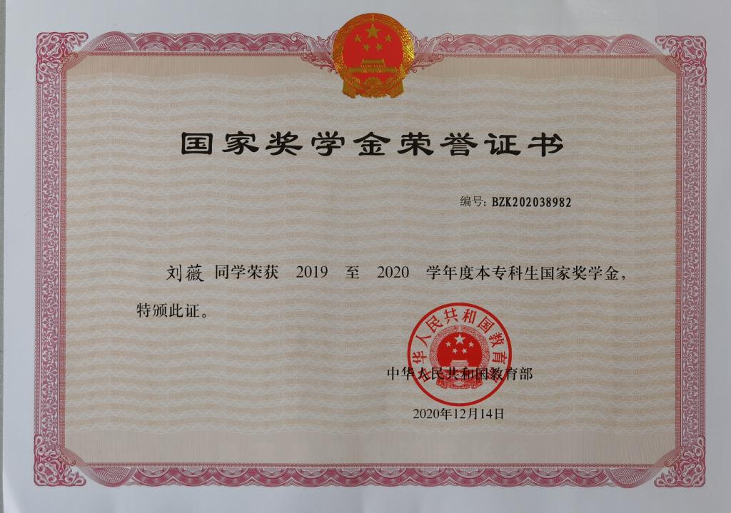 刘薇,哈哈体育食1701-1班员工,本科期间连续三年专业第一;获得国家奖学金、优秀员工标兵奖学金、优秀员工奖学金等;被评为2020年度山东省优秀员工,获得校级优秀共青团员、院级优秀共青团员等荣誉称号;参与并顺利结题国家级大创项目2项,参与教师科研项目1项等。念念不忘,必有回响,最终刘薇在2021年研究生考试中以384分的成绩(笔试第二、复试第一,总成绩第一)被东华大学生物与医药专业录取。