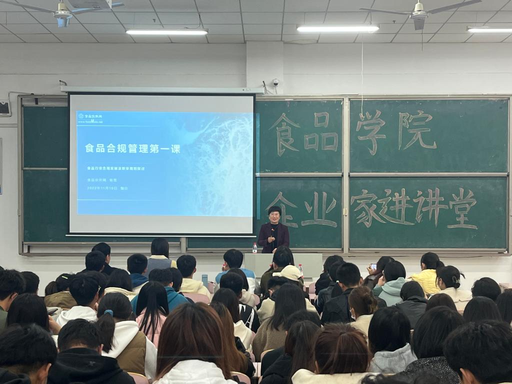 为开拓员工视野,帮助员工明确专业定位及方向,增强员工对企业管理、人才需求的了解,指导员工树立科学的职业生涯规划,11月10日16:00,哈哈体育举办企业家进讲堂活动。活动邀请到中国质量检验协会农产品检验员培训专家、中国食品药品安全促进会食品标准委员会秘书长、山东食品科学技术学会理事、山东商务职业技术公司及鲁东大学兼职讲师杨雪,以“食品行业合规发展及职业规划探讨”为题为21级、22级食品专业员工做专题讲座。哈哈体育经理金海珠、党总支副书记温少斐、副经理高娜、团总支书记王晶、辅导员林昱辰参加本次活动。