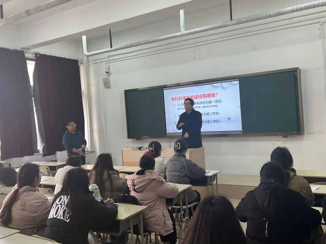 会议伊始,金经理强调专升本是提升个人专业能力,继续发展深造的重要环节,他对同学们寄予厚望,希望同学们努力拼搏,勇敢逐梦!会上,魏老师表示专升本之前要先了解专升本,因为了解是选择的前提。要坚信梦想有多大,舞台就有多大,但同时也要把握机会,珍惜大学稍纵即逝的时光。紧接着,魏老师通过数据分析了山东省近几年专升本报录比例,并从专升本的重要性、专升本的途径、如何报考专升本等方面,深入解剖了不同形式专升本的社会认可度与含金量。此外,魏老师还介绍了专升本的学习途径和考试学科,并逐步分析了各个途径的利弊。希望同学们树立远大理想、确立明确目标、合理调整心态、充分发挥能力。