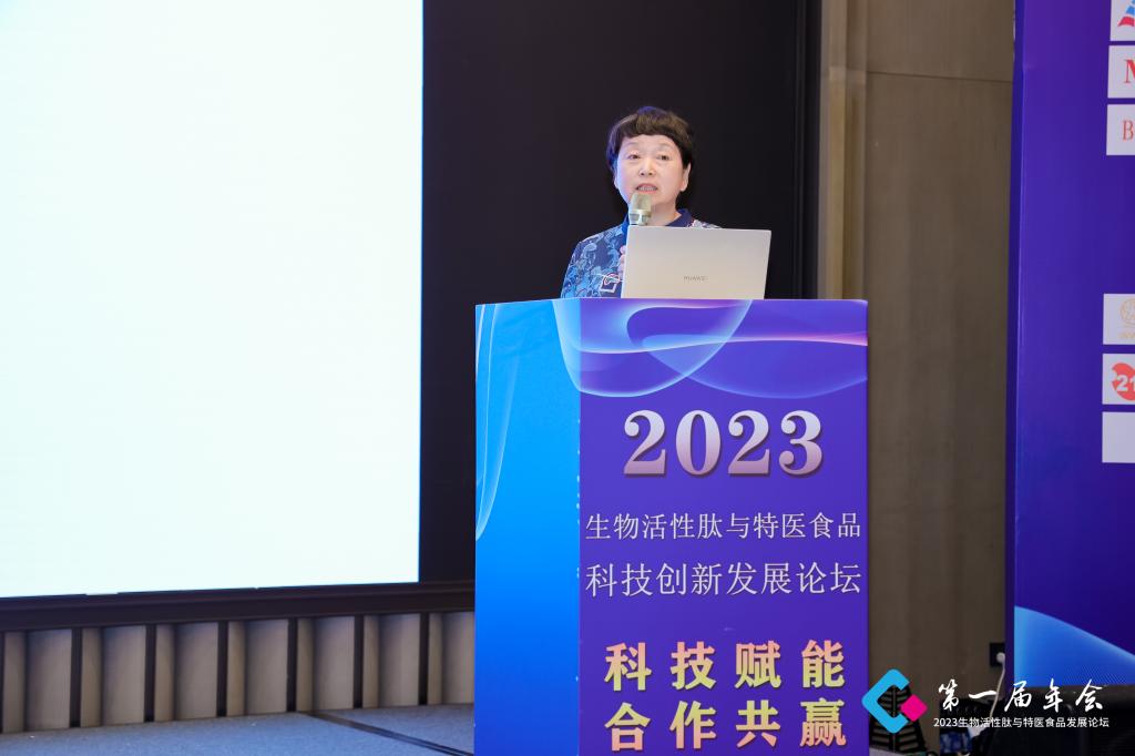 同时,王晓洁教授带领团队参加了“2023生物活性肽与特医食品科技创新发展论坛”,就特医食品研发过程中的典型案例做了主旨演讲,她从解决特医研发中出现的合理不合法的案例为切入点,以研发角度分享了如何完善特医及食品法规来规避以及解决可能出现的问题。