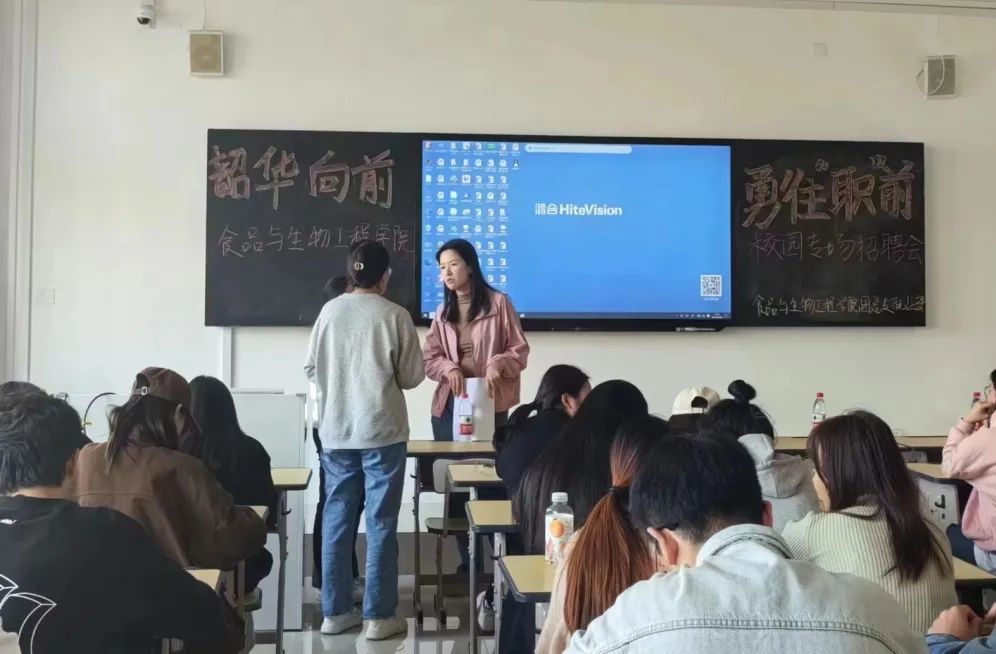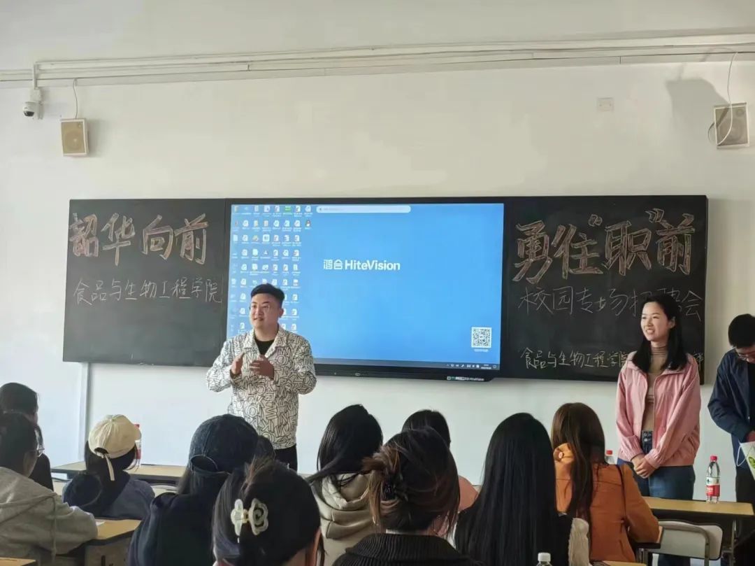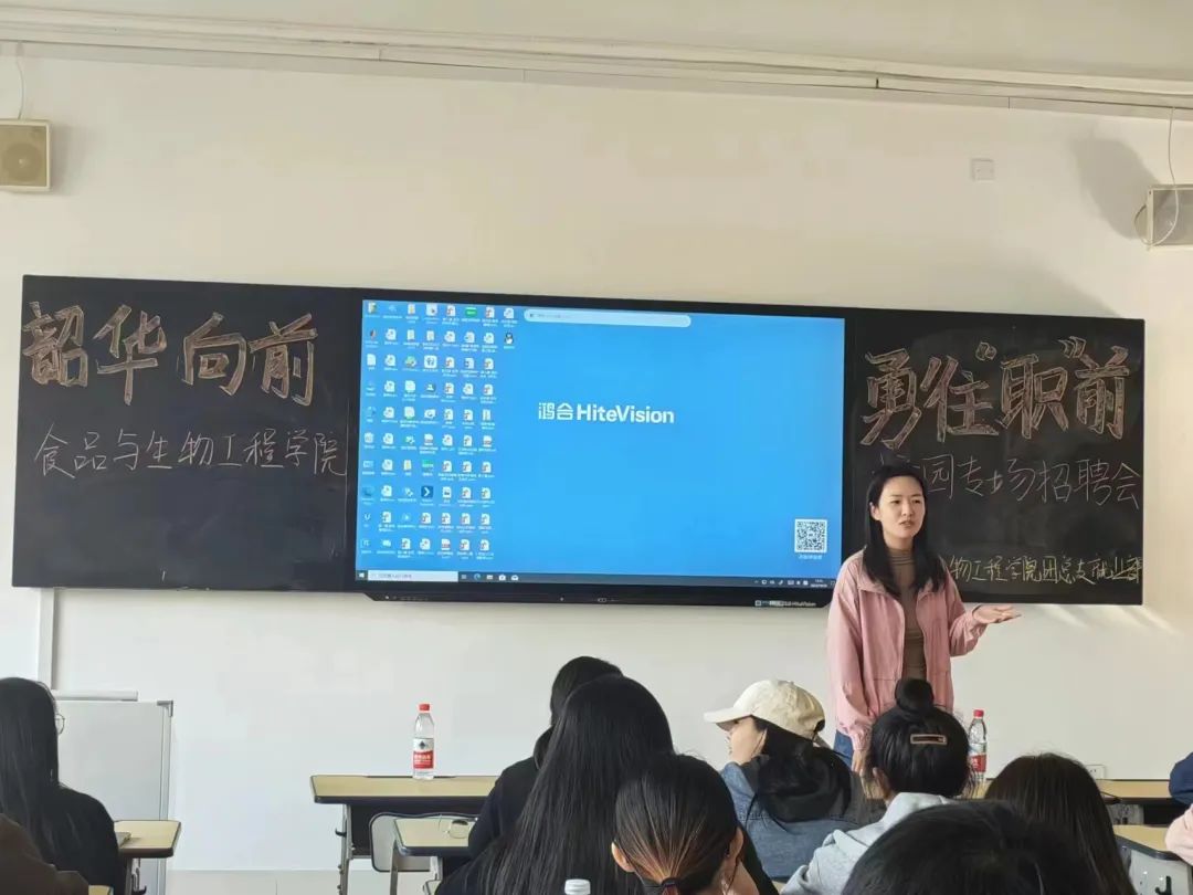 招聘会伊始,山东仙坛食品有限公司人事负责人都美君围绕招聘岗位、岗位职责、招聘计划以及薪资待遇等方面对企业进行了系统完善的介绍,并针对员工提出的问题给予相应指导。招聘人员与应聘同学在现场进行了面对面交流,双方在一问一答中,充分对接人才供需意向。招聘会中,孙钰涵老师提到,本次招聘会为老员工与企业搭建了优质的交流平台,可以有效帮助毕业生在未来的工作中找准定位、明确方向。老员工们学习积极性强、可塑性高,应当积极参与到招聘会中,积极了解就业市场,为自己的未来制定具体可行的针对性计划,为拥有更广阔的未来而努力。同学们纷纷表示,参加此次招聘会让他们对社会就业形势有了更直观的认识,在发现自身不足之处的同时,可以结合实际及时做出调整,做好更清晰、更适应、更可行的职业规划,实现人生目标。