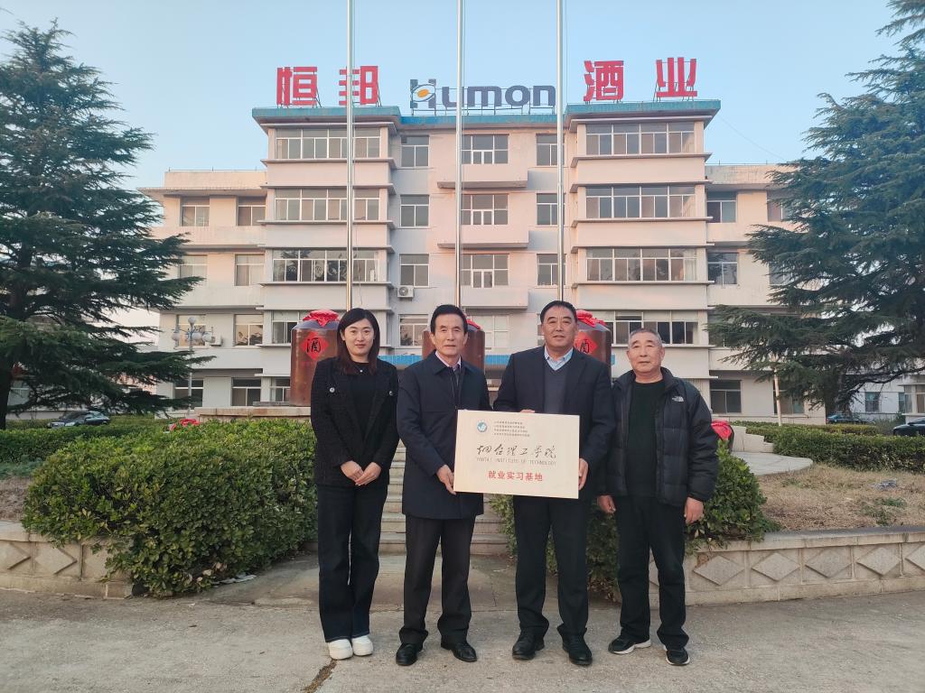 活动伊始,烟台恒邦酒业有限公司代表对公司一行的到来表示热烈的欢迎。王家好董事长介绍到,烟台恒邦酒业有限公司前身为始建于1958年的国营山东牟平酿酒厂,多年来专注于薯香酒的酿造与研发,以传承创新酿酒为己任,做红薯酿酒的坚守者。他希望通过校企合作,把科研做在产品上,为产品深加工发展提供技术支撑,增加产品功能性、提升产品附加值。随后,金海珠经理和王晓洁教授就如何真正实现校企合作、落地产学研、促进企业高质量发展以及实现人才供需精准对接分别谈了具体意见和想法。通过深入交流,校企双方表示将本着“资源共享、优势互补、共谋发展”的理念,建立长效合作机制,进一步加快产品研发、科技创新、协同育人的步伐。最后,进行了“就业实习基地”挂牌仪式。