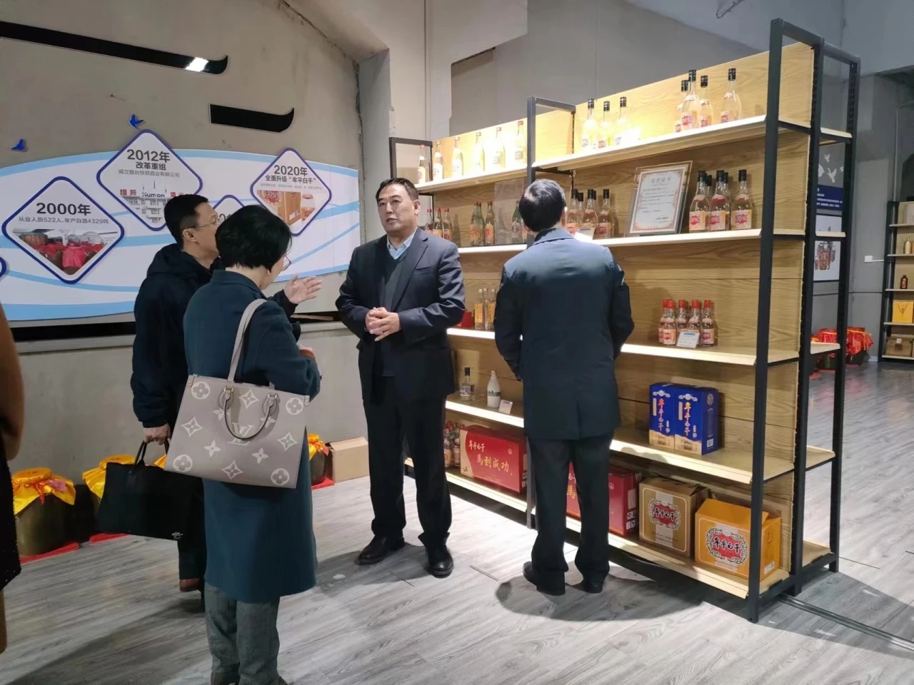 座谈结束后,公司一行在董事长王家好、总经理赵成江、工程师王淑秀以及总经理助理王珺燕的陪同下参观了恒邦酒业的酿制车间以及文化展馆,实地了解古法酿酒工艺、感受酒文化魅力。