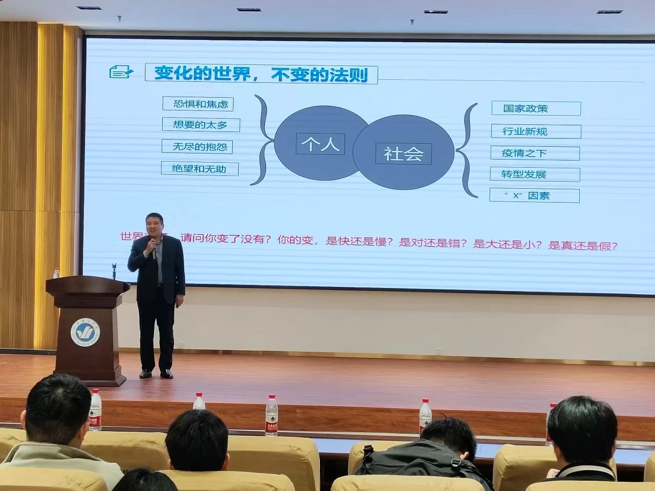 刘宗奎先生围绕“老员工职业发展规划”这一主题,作了一场内容丰富、富有启发性的演讲。他从职业规划、行业洞察、职业选择和企业需求四个方面进行了深入剖析,建议同学们应制定具体而适宜的未来规划,并强调了职业生涯规划时应考虑的多方因素和内在标准,为同学们在各个阶段的职业规划提供了宝贵建议。他丰富的职场经验和幽默风趣的表达方式,赢得了在场师生的阵阵掌声。最后,孙钰涵老师提到,同学们要脚踏实地、实事求是,清楚自身定位,同时立足现状,主动探索适合自己的成长路径,规划好、实践好自我职业生涯规划。