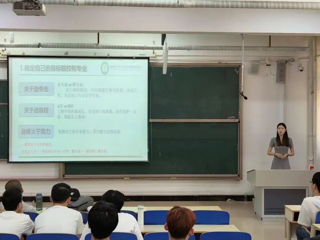 在以“考研”为主题的部分,邀请到了成功上岸天津科技大学的张孟熙和成功上岸浙江海洋大学的薄纯鑫担任主讲人。他们都以自己的实际经历为例,分享了自己的考研历程和心得体会。同时,他们还从复习方法,时间管理,心态调整等方面进行了深入浅出的讲解,为同学们提供了宝贵的建议与指导。