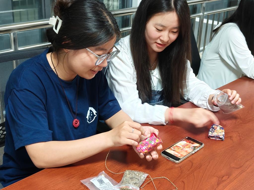 在端午手作活动中,穿针引线,彩布轻扬,把祝福与祈愿细细封装,一个个手工香囊凝聚着巧思的光芒。送给老师的香囊也满含敬意,似微风中飘来的淡雅香气,承载着感恩悠悠飞向师者心底。在这端午时节,写下深情的一笔。五彩的丝线,精致的香囊,端午的传统,都在此刻闪亮。知识的力量,让心潮澎湃激昂;文化传承,在心中深深埋藏;端午的故事,也将继续传唱。