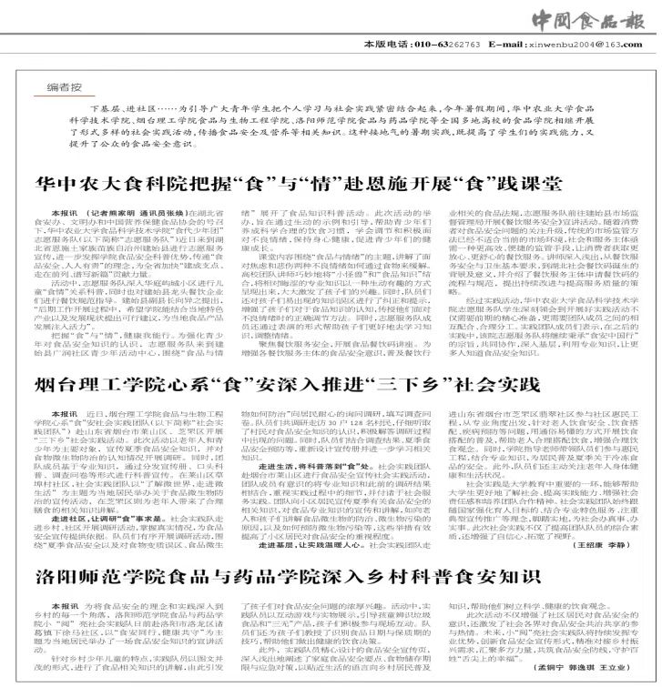 7月25日,哈哈体育“三下乡”社会实践活动被《中国食品报》刊登报道。