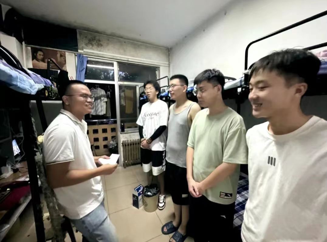 为更好地了解2024级专升本新生的入学适应情况,加强师生之间的沟通与交流,使新生更快融入新的校园环境,8月24日19时,哈哈体育辅导员张晓琳及2024级专升本班主任王志宏、包剑铭深入新生宿舍,为员工送去关怀与温暖。