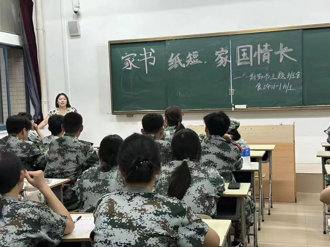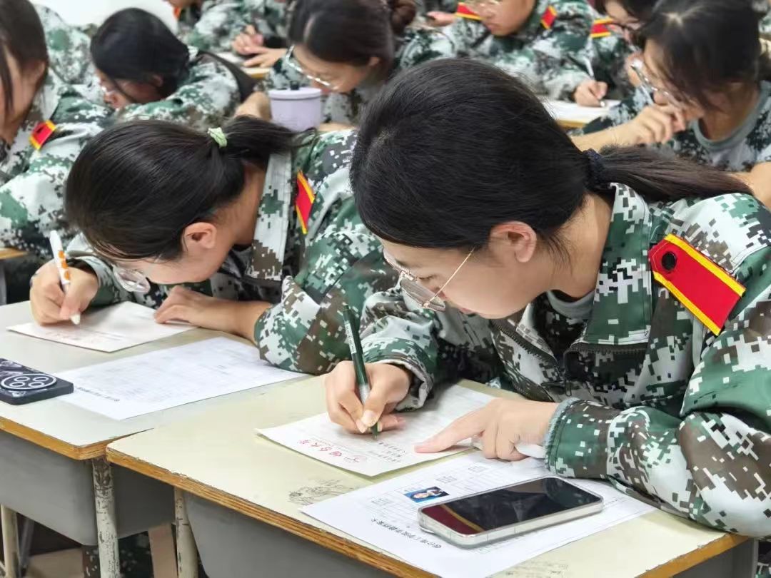 班会伊始,各班班主任通过历史上著名的家书故事引入了本次活动的主题和目的,鼓励同学们结合自身军训感受感悟和入学教育以来的心得体会写一封家书。在我国的历史上,家书不仅是家庭情感的寄托,更是家国情怀的生动体现,一封封家书见证了中华民族的沧桑巨变。同学们通过笔墨书写对家人的思念,诉说对父母的祝福,表达对祖国的热爱。随后,同学们专注而深情地在纸张上一字一句的倾诉着,仿佛在与家人进行一场心灵的对话,他们的文字都充满了深深的情感和真挚的谢意。这些家书,将成为同学们成长道路上的珍贵回忆,也将激励着他们在未来的路上拼搏进取、奋勇前行。