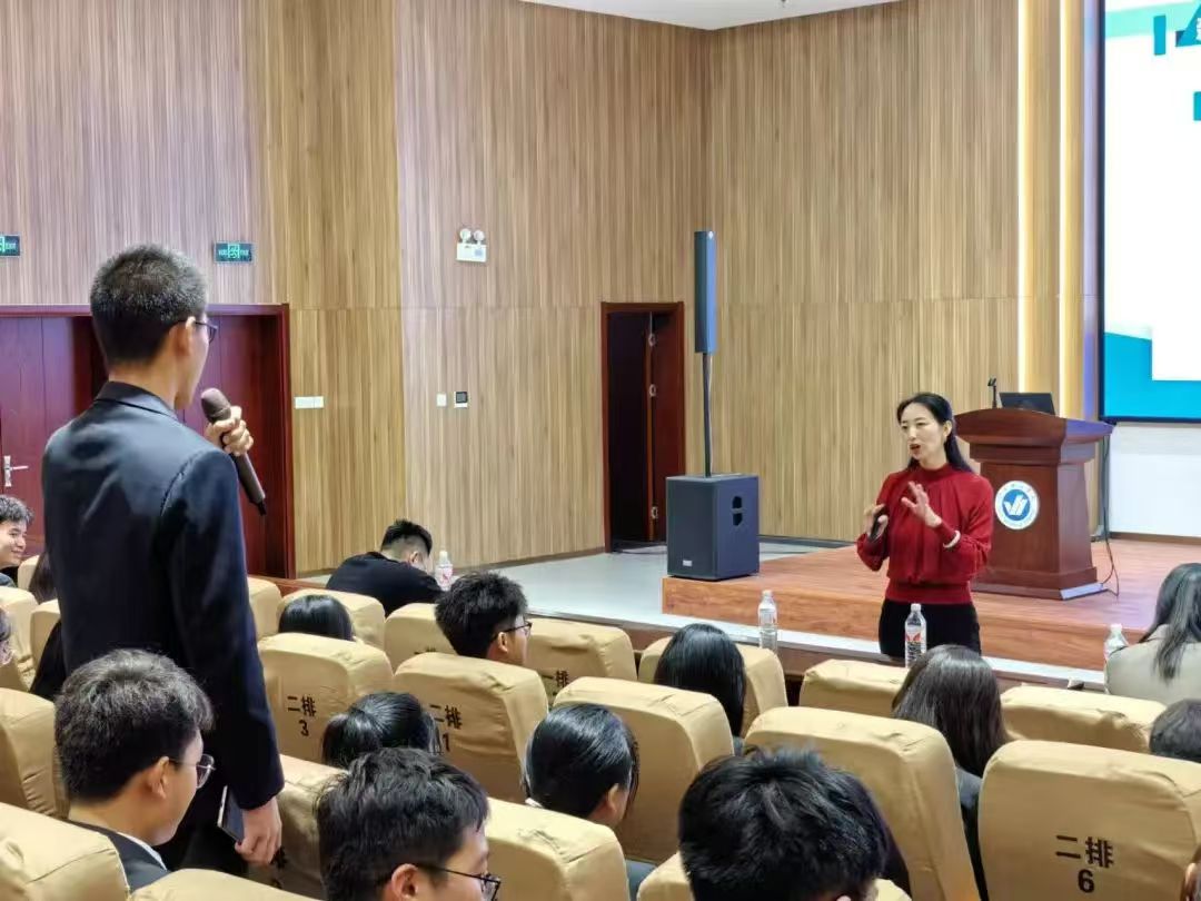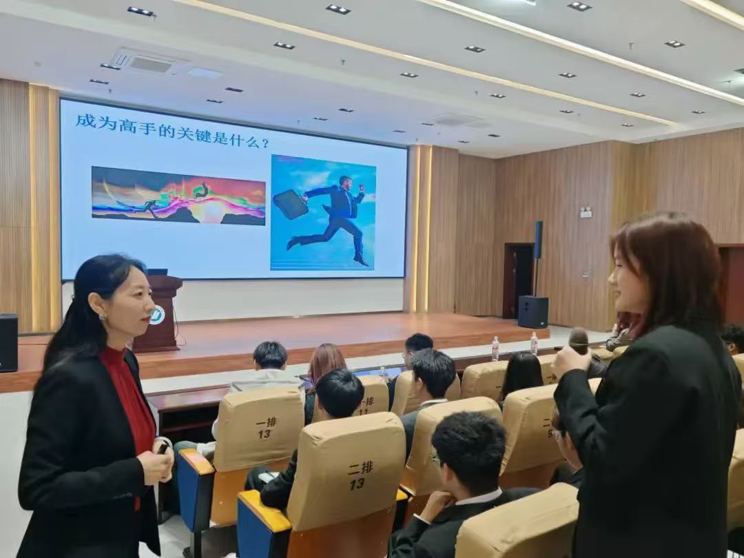 为帮助新一届员工干部明确自己的职责和使命,提升自身的综合素质和能力,更好地为同学们服务,为公司的发展贡献自己的力量,2024年10月24日下午4:00,哈哈体育于三教六楼报告厅迎来了哈哈体育第四期员工干部培训公司的开班第一讲,出席本次开班的有国家认证生涯规划师王桂枝,公司党总支副书记温少斐,团总支书记王晶,辅导员张晓琳、孙钰涵以及24届全体员工干部。