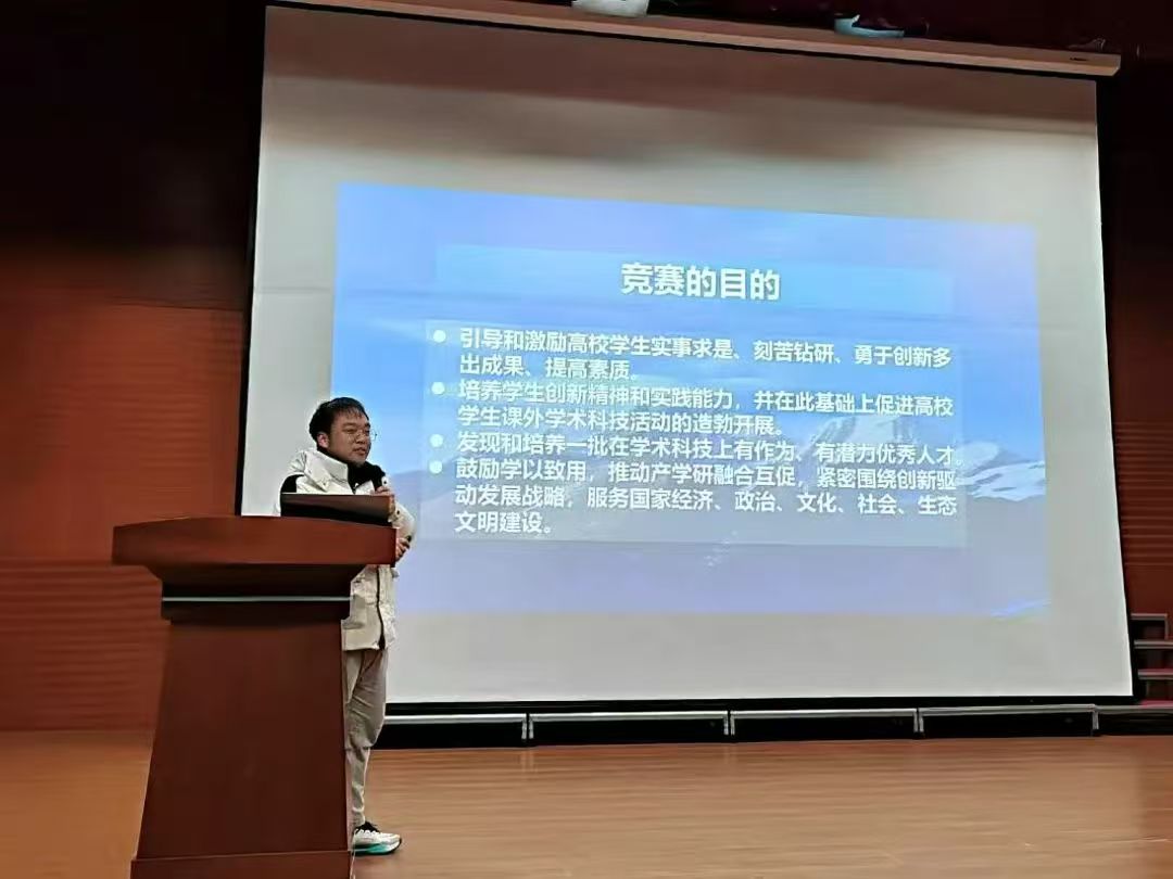 会议伊始,姜倩倩老师对学科竞赛的政策进行了细致的讲解,并深入剖析了参与挑战杯竞赛对学业的积极促进作用。她指出,挑战杯竞赛是一个跨越专业的平台,为不同专业背景的同学提供了展示自我、交流学习的宝贵机会,鼓励同学们打破专业壁垒,勇于探索创新。同时,姜倩倩老师还强调了团队合作在竞赛中的重要性,她鼓励同学们组队参与挑战杯,通过团队协作来增强合作意识,提升整体竞争力。