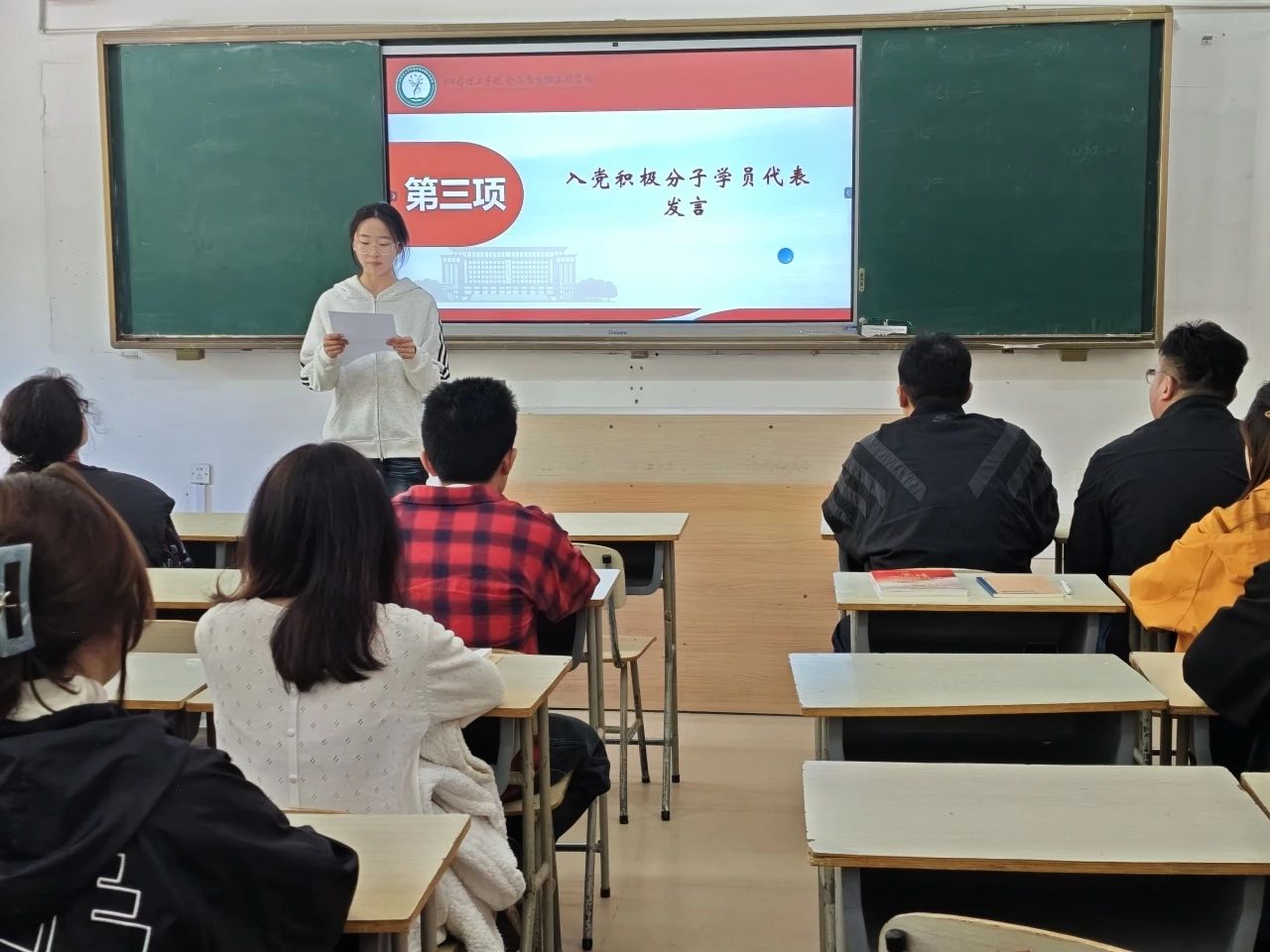 随后,葛阳同学作为入党积极分子代表发言。她表示,将以此次培训为契机,努力学习党的创新理论、光辉历史和优良作风,以饱满的热情投身党的各项事业,争做符合党和人民期望的社会主义合格建设者和可靠接班人。她坚定有力的话语,表达出新时代青年对党的忠诚向往和勇担使命的决心。