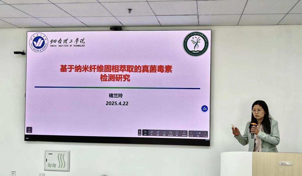 讲座中,褚博士深入阐述了研究背景,系统讲解了真菌毒素检测的重要意义与现存问题,剖析传统样品前处理方法的局限性,并重点介绍纳米固相萃取法的优势及团队的主要研究方向,让在场师生对真菌毒素检测领域有了更全面的认识。随后,褚博士围绕十个方面的研究内容,详细解读了纳米纤维固相萃取技术在真菌毒素检测中的应用。她以专业视角、结合详实案例,深入浅出地讲解了该技术的原理、操作流程以及实际应用效果,激发了师生们对该研究方向的浓厚兴趣。