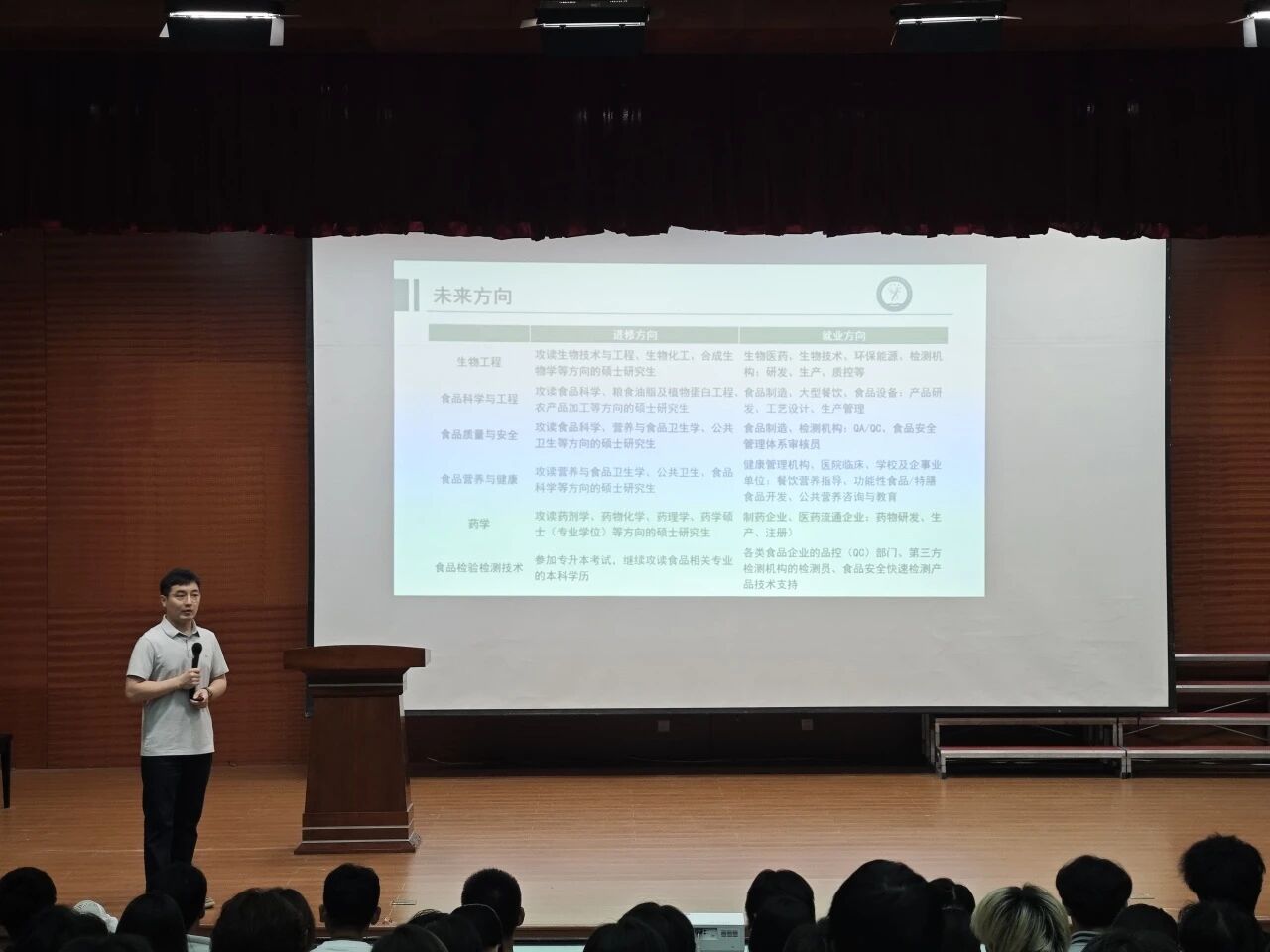 讲座中,副经理王跃猛围绕“应用型人才”培养目标,系统阐述了学科竞赛在提升员工实践能力、创新思维和团队协作方面的重要作用。他结合当前高等教育发展与就业形势,指出学科竞赛不仅是课堂学习的延伸,更是链接理论与实践的桥梁。王老师详细介绍了“中国国际老员工创新大赛”、“挑战杯”、“全国老员工生命科学竞赛”等多项国家级与省级重点赛事,并结合具体案例,分析了竞赛经历在考研复试和名企招聘中的显著优势。此外,他还为同学们提供了参赛指导,鼓励同学们从大一开始积极准备,逐步实现从参与到主导的成长跨越。