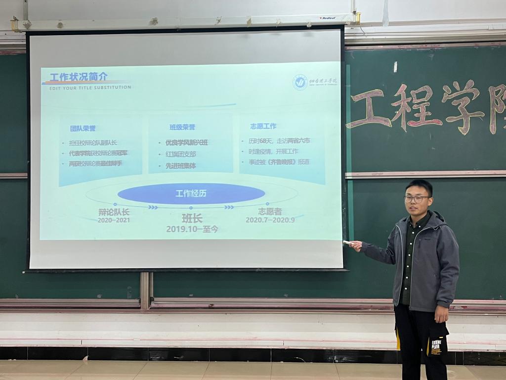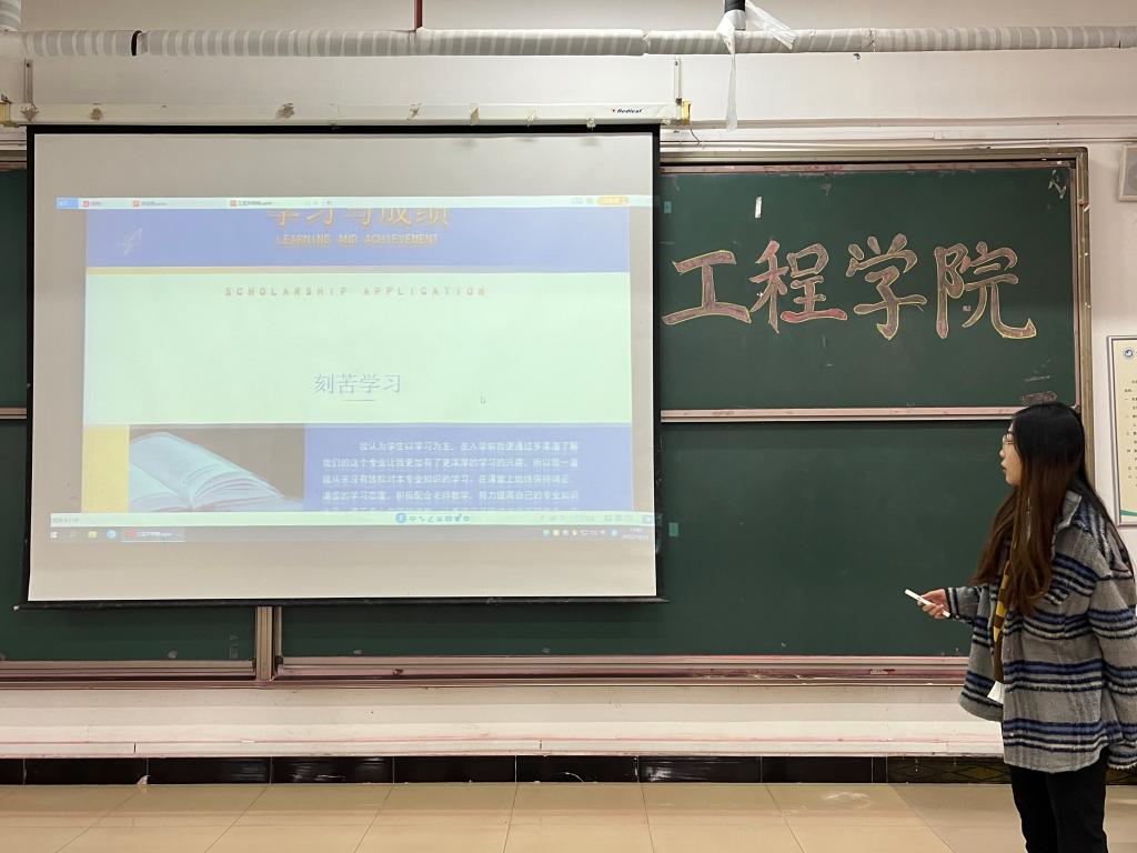 会议伊始,党总支副书记温少斐简要说明了答辩会流程及注意事项,并对答辩候选人取得的成绩予以充分的肯定,希望参与答辩的同学能充分展示自我,保持良好心态,在观摩答辩学习中不断提升自己,实现向优秀学习、与榜样并肩的目的。经个人申报、资格审查,共有二十一名同学参加此次答辩会。他们从思想政治、学习情况、实践活动、工作业绩、获奖情况等方面进行介绍,并阐述了逐梦筑梦的奋斗历程及个人感悟。最后,评审组秉持着“公平、公正、公开”的原则,择优确定国家奖学金、省政府奖学金、祥隆奖学金拟获得者名单。