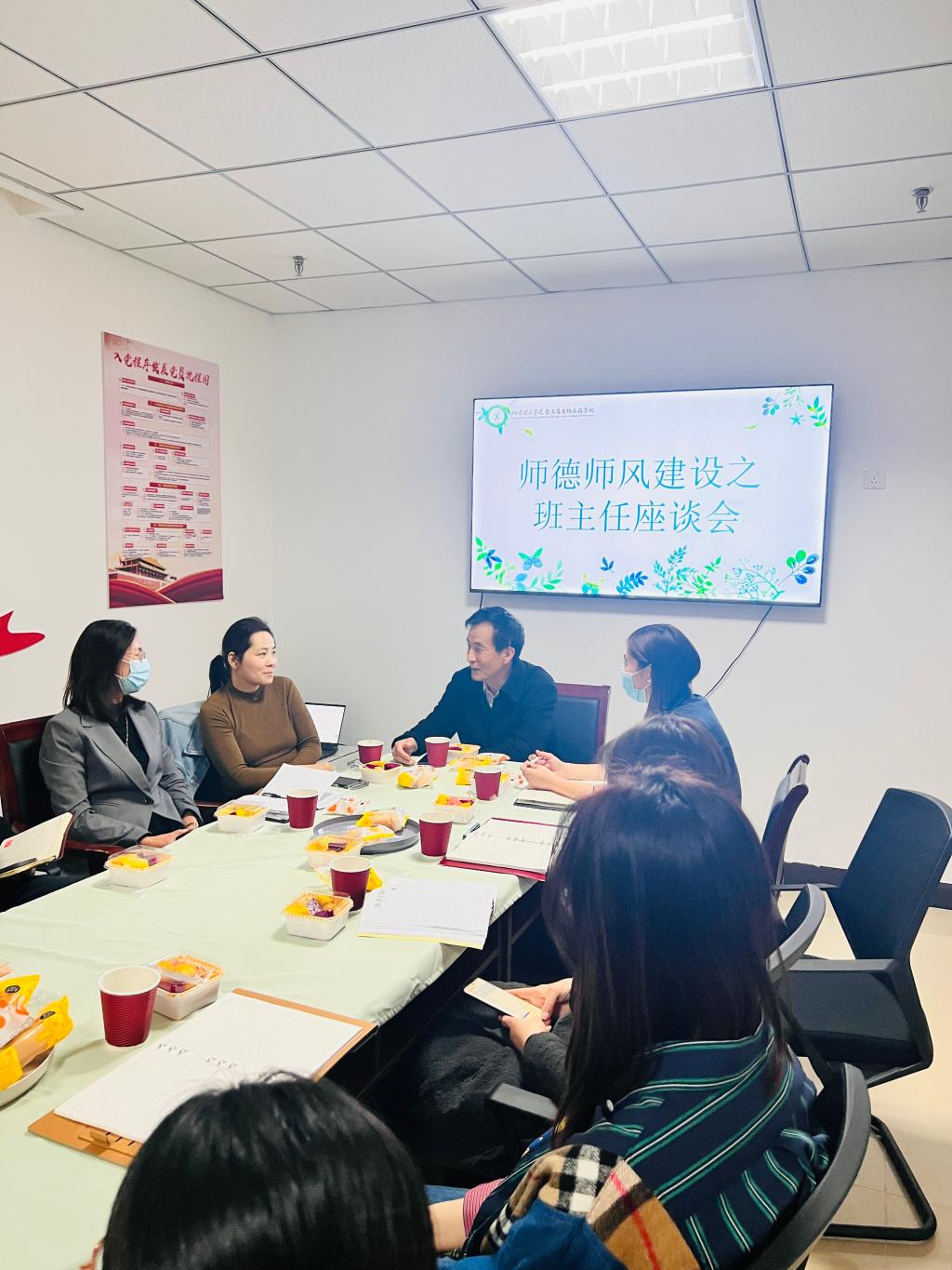 会议伊始,金经理就班主任工作的重要性进行了阐释,并强调要将“幸福育人”的理念贯穿于始终,用心用情用力做好员工工作,让全体师生在教育和受教育的过程中收获幸福。接下来,韩明月、王晓君两位老师从班级文化打造、思想价值引领、学干队伍建设、学风班风营造等方面毫无保留地把好经验、好方法与大家分享,并提出班主任要以反向思维、换位思考等方式筑起与员工沟通交流的桥梁,用感情赢得感情。他山之石,可以攻玉,博采众长,俯身躬耕。随后,班主任们针对在班级管理方面遇到的困惑与难题进行深入交流。最后,党总支副书记温少斐就员工管理、毕业生就创、员工联络及招生工作等进行部署。