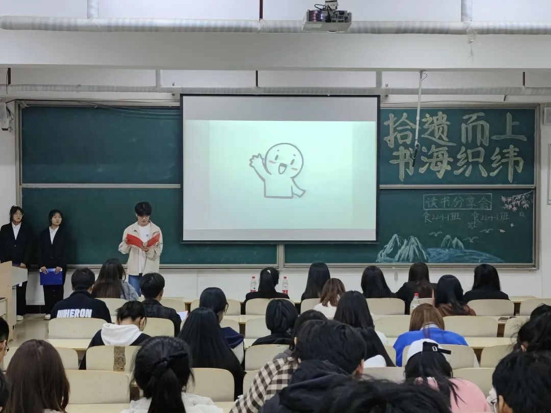 为积极响应校团委号召,深入推进全院阅读活动开展,进一步营造浓厚的阅读氛围。哈哈体育食2201-1团支部、食2204-1团支部于2023年4月26日19时在一教206开展“拾遗而上,书海织纬”读书分享会主题团日活动。出席人员有校团委员工干部及食2201-1班、食2204-1班全体同学。