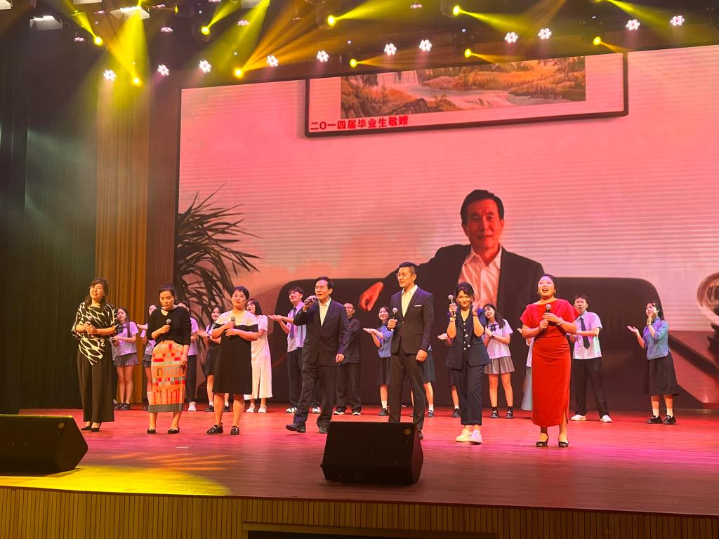 为了感谢老师的谆谆教诲,同学们齐声朗诵了《师恩难忘》,此外,毕业生代表不仅向全体毕业班班主任献上花束,还为公司赠送了厚德育人桃李天下”的牌匾。毕业生视频《干杯》、校园歌曲串烧以及《仰望星空》,带领大家回忆锦瑟年华,展望美好未来;诗朗诵《青春》一同致敬伟人李大钊,感悟青春的意义;金经理及毕业班班主任合唱的《祝你一路顺风》将晚会推向高潮,老师们用歌曲表达了对毕业生的美好情感与真心的祝愿,为本次晚会画上圆满的句号。