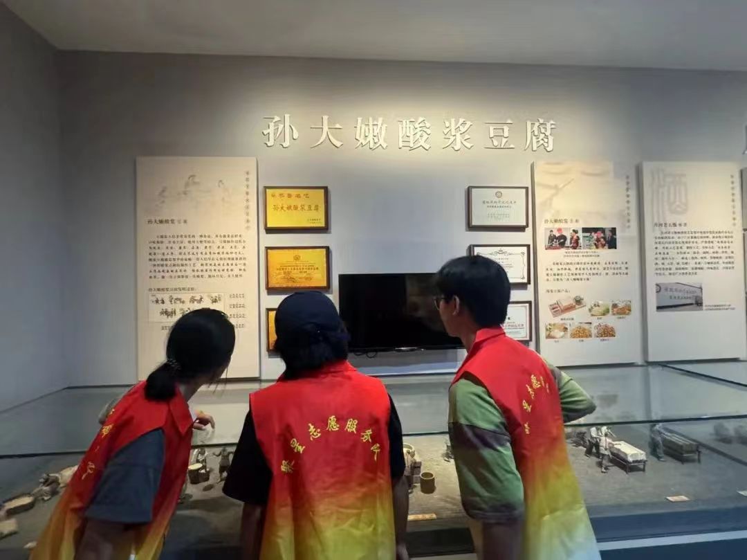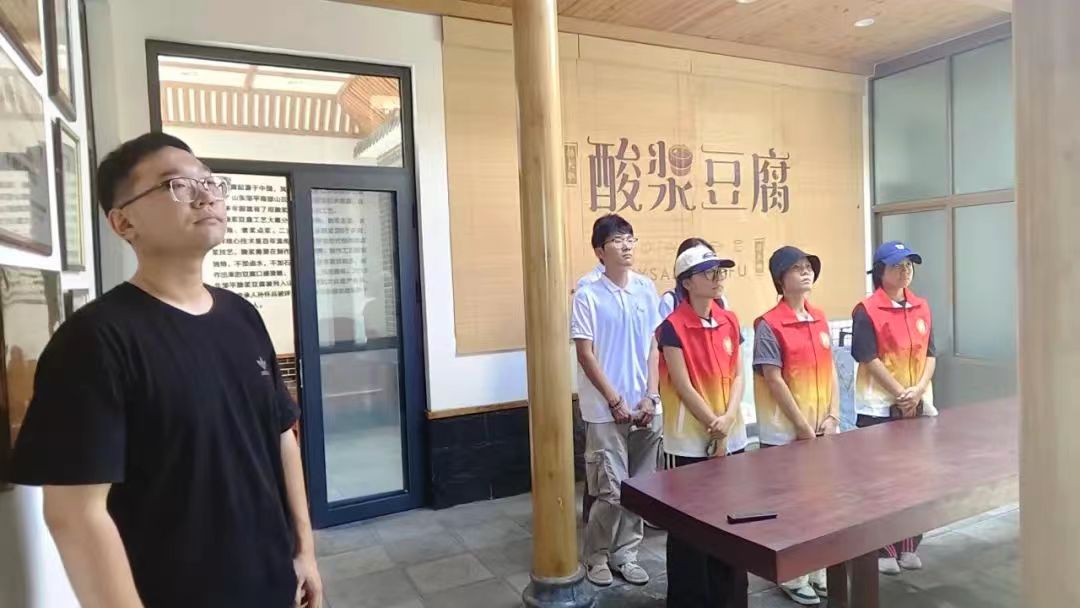 最后,实践队伍走进邹平酸浆豆腐传习所。酸浆豆腐作为邹平市的特色非遗项目,以其独特的制作工艺和鲜美的口感而闻名。在传习所中,队员们通过参观豆腐制作的传统工具、工艺流程展示,深入了解到酸浆豆腐的制作奥秘和文化底蕴。传习所内展示的酸浆豆腐的发展历程和对当地经济、文化的影响,让队员们对这一传统美食有了全面的认识。