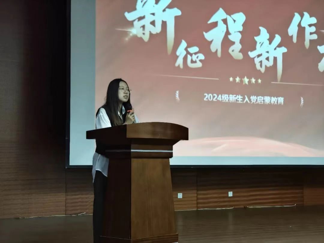 会议伊始,辅导员张晓琳首先通过时间线的形式,带领新生们回顾了中国共产党从成立之初的艰难困苦,到如今的繁荣昌盛的光辉历程。从井冈山的星星之火,到长征路上的艰难险阻,再到改革开放的春风化雨,每一个历史节点都让新生们深刻感受到了共产党人的坚定信念和不懈追求。同时,张老师还特别就二十届三中全会和铸牢中华民族共同体意识相关内容带领同学们共同学习。随后,张老师普及了入党的基本流程,她强调,青年是国家的未来和民族的希望,加入中国共产党是青年追求进步、实现人生价值的崇高选择,她鼓励新生们积极向党组织靠拢,做到知行合一,紧跟党走,传承伟大精神,端正入党态度。最后,张老师还从学习、心态、社交、身份四个方面,向新生们介绍老员工活的正确打开方式,她强调,新生们需要明确目标与规划、积极参与课堂与学术活动、拓展兴趣与社交圈、注重实践与实习、保持身心健康,与新时代同频共振,同向同行。