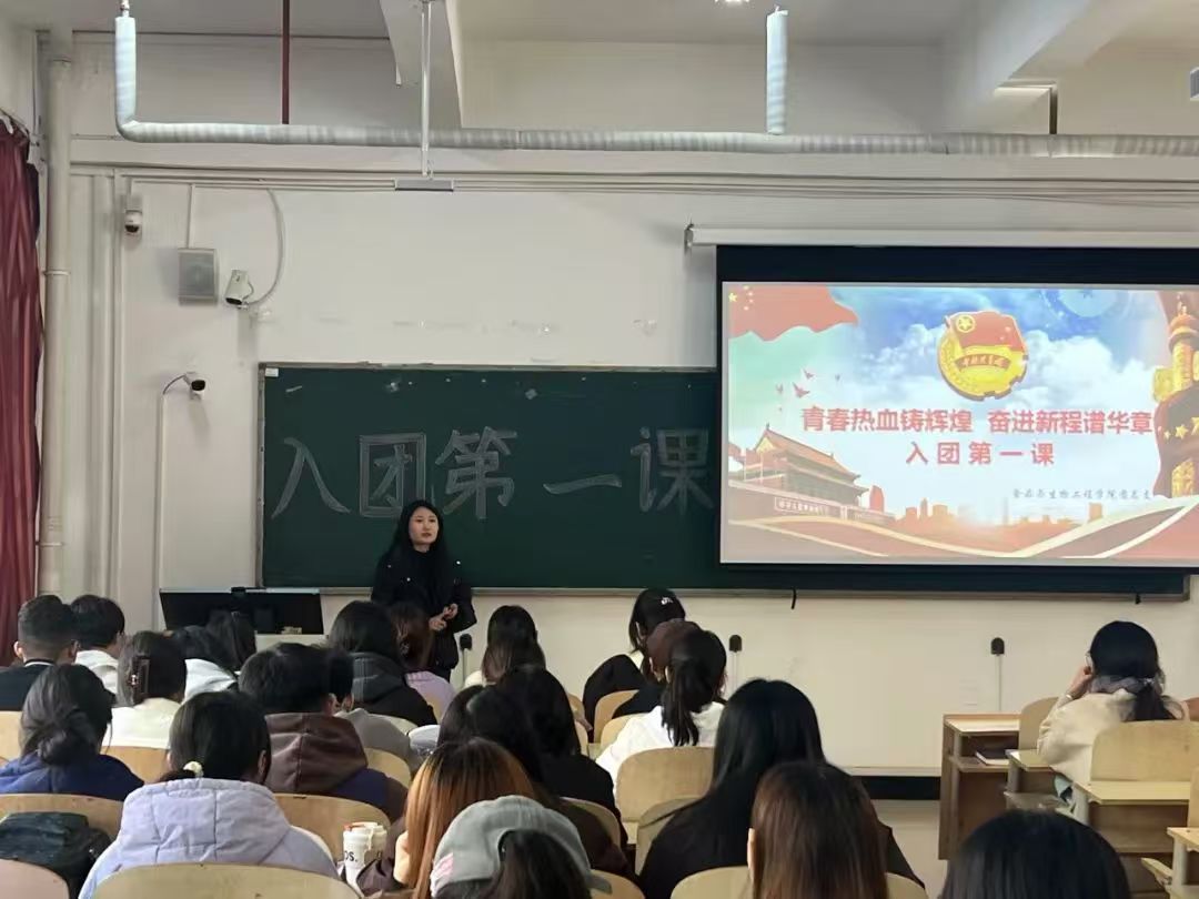 11月7日,主题团课培训正式拉开帷幕。团总支组织部部长陈志慧同学带领青年团员们通过视频资料回顾了共青团的光辉历程,让同学们更加直观地感受到了共青团的历史和文化。同学们一同学习共青团的性质、宗旨、任务以及入团誓词等核心内容,明确团组织在青年成长成才中的重要作用。通过课程,鼓励同学们要勇于担当时代责任,积极投身社会实践,为实现个人价值和社会进步贡献力量。