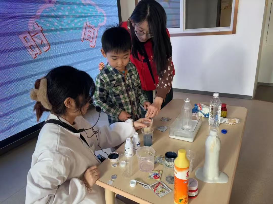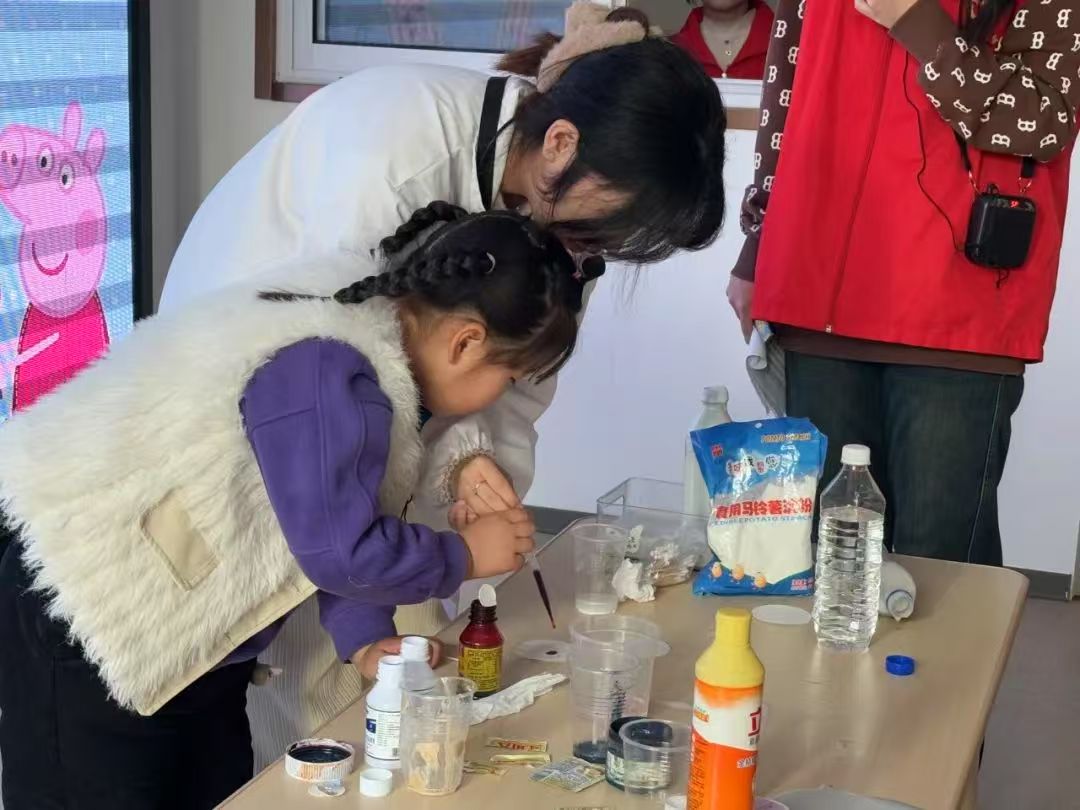 在志愿者们的引导下,小朋友们不仅观看了实验过程还亲自参与其中,孩子们小心翼翼地操作着实验器材,认真每完成一个步骤,亲身感受科学实验的乐趣。通过亲身实践,孩子们不仅加深了对科学原理的理解,还培养了团队合作和解决问题的能力。现场氛围十分活跃,孩子们在轻松愉快的氛围中收获了知识,激发了探索科学的热情。