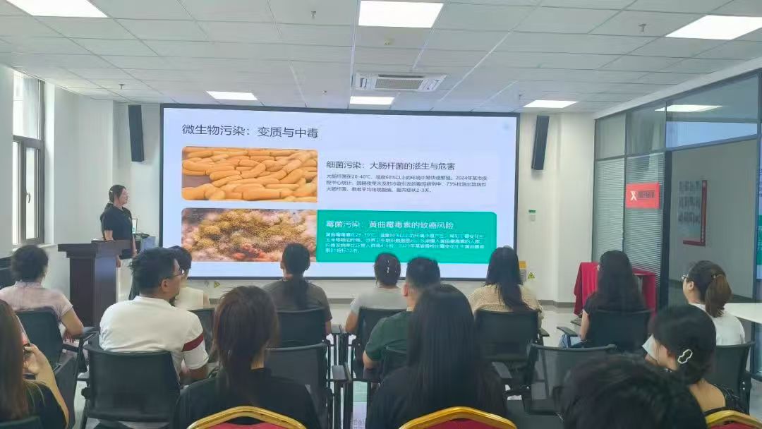 最后,团队在中海国际社区开展了一场集中宣讲会。通过PPT展示、实物对比、案例分析等形式,系统讲解了食品添加剂使用规范、过期食品处置方法、食物中毒应急措施等知识。宣讲中,团队成员结合近期发生的食品安全典型案例,深入剖析日常生活中容易被忽视的安全隐患,引导居民树立科学的饮食观念。