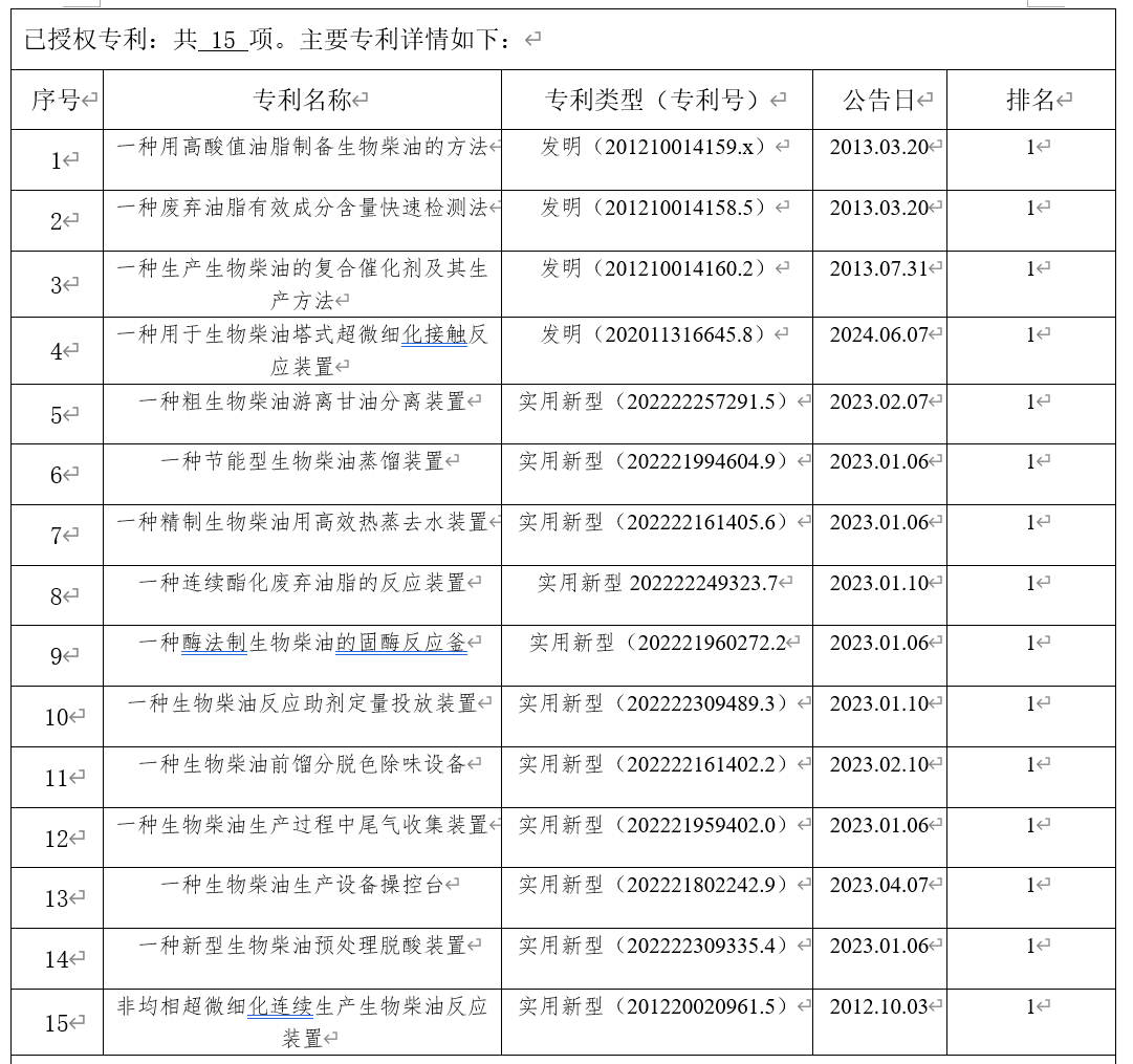 1、国家火炬计划立项项目(生物柴油成套技术开发与产业化项目【2011GH051453】)技术负责人
