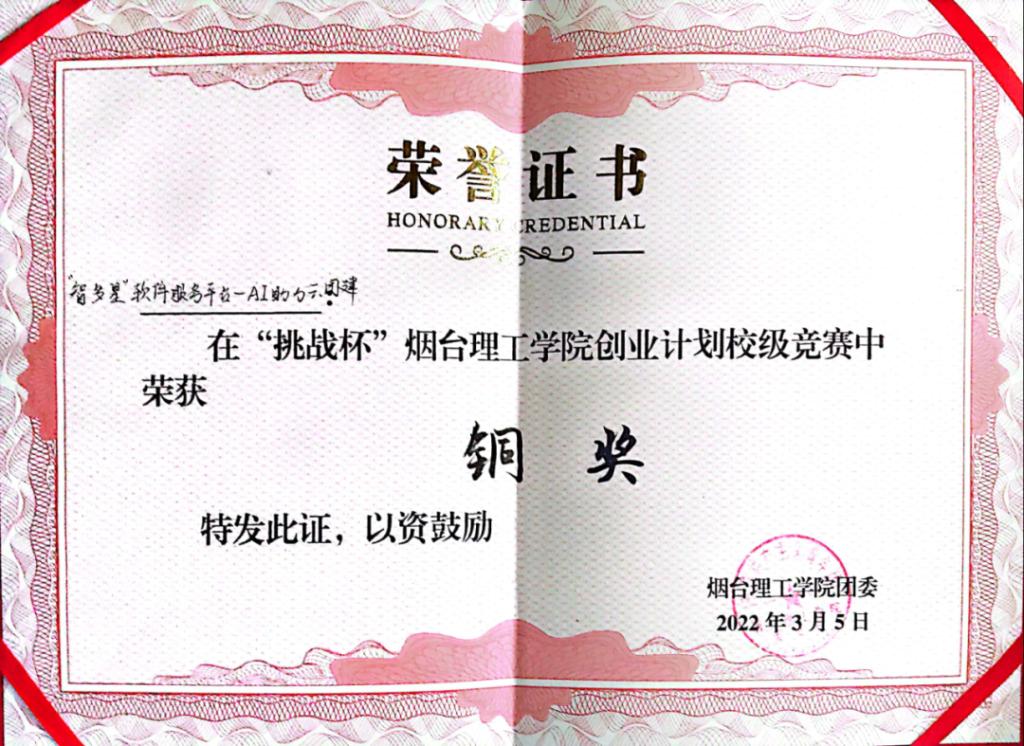 优秀员工奖学金;华鹏企业奖学金;校级优秀员工干部;校级优秀共青团干部;优秀员工荣誉称号;挑战杯创业计划银奖;挑战杯创业计划铜奖;宿舍文化节校级一等奖。