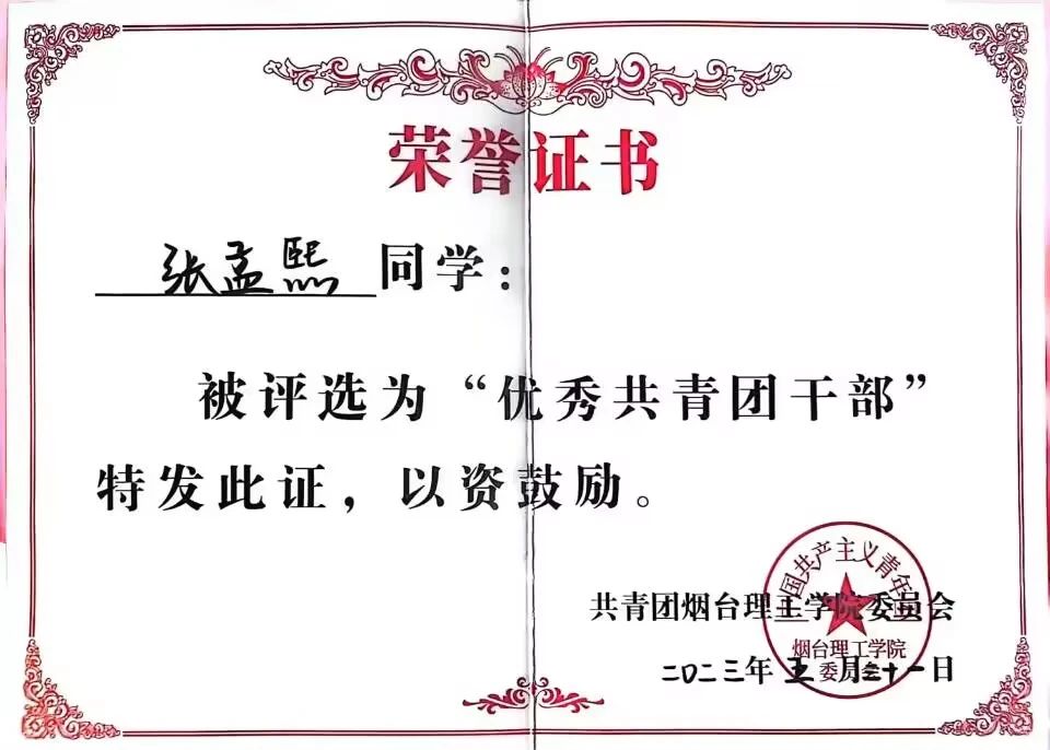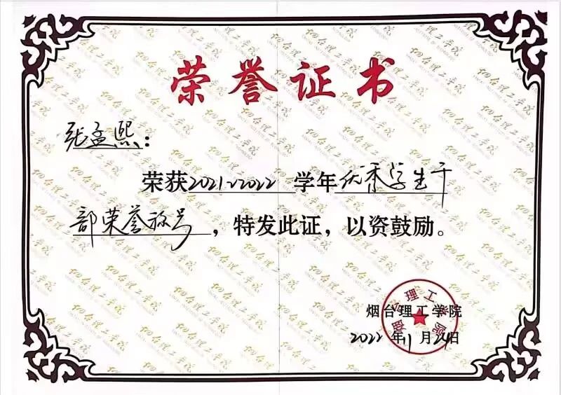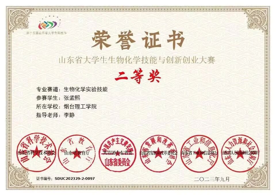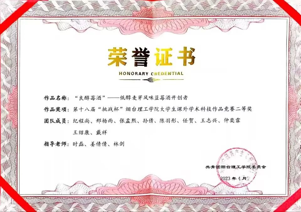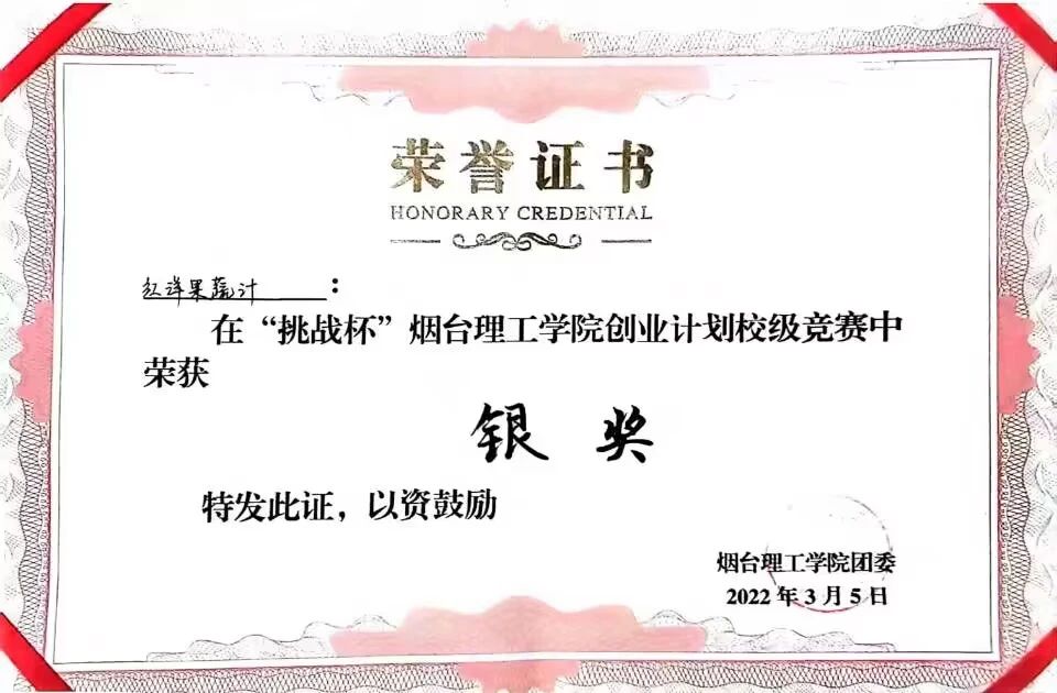 所获荣誉:2021-2022学年HAHA体育挑战杯创业计划校级竞赛银奖;2021-2022学年HAHA体育优秀员工干部荣誉称号;2021-2022学年华鹏企业奖学金;2021-2022学年学习进步奖学金;2022-2023学年第十八届挑战杯HAHA体育老员工课外学术科技作品竞赛二等奖;2022-2023学年山东省老员工生物化学技能与创新创业大赛二等奖;2022-2023学年员工干部标兵荣誉称号;2022-2023学年HAHA体育优秀共青团干部荣誉称号;2022-2023学年华鹏企业奖学金。