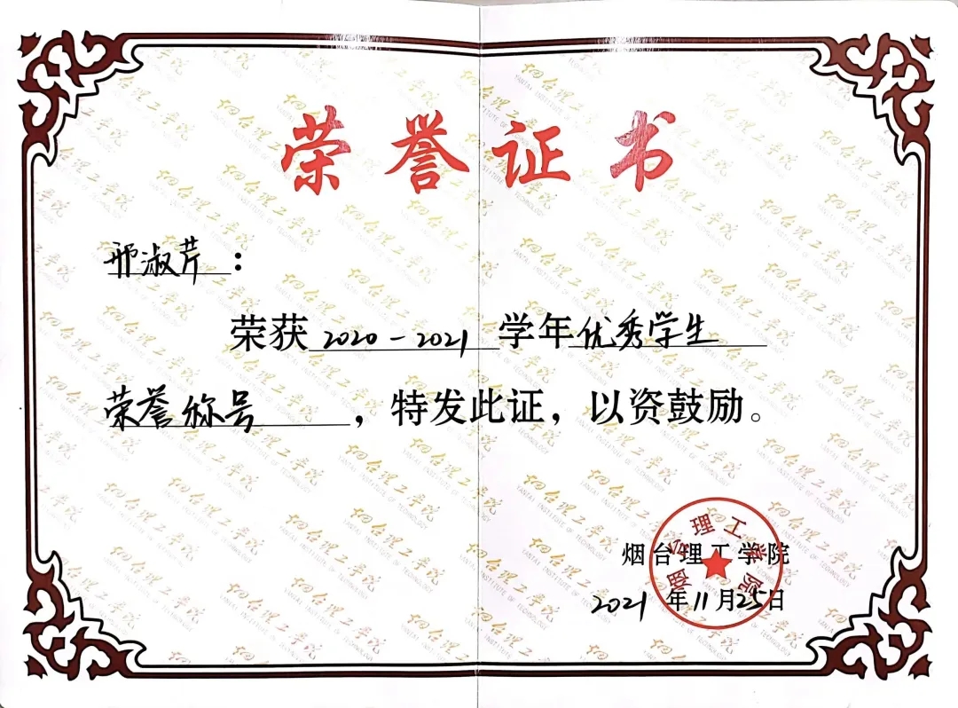 所获荣誉:曾获优秀员工、优秀共青团员荣誉称号和学习优秀二等奖学金。