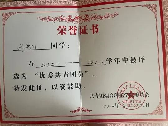 1.2021-2022学年度“校级优秀共青团员”称号;