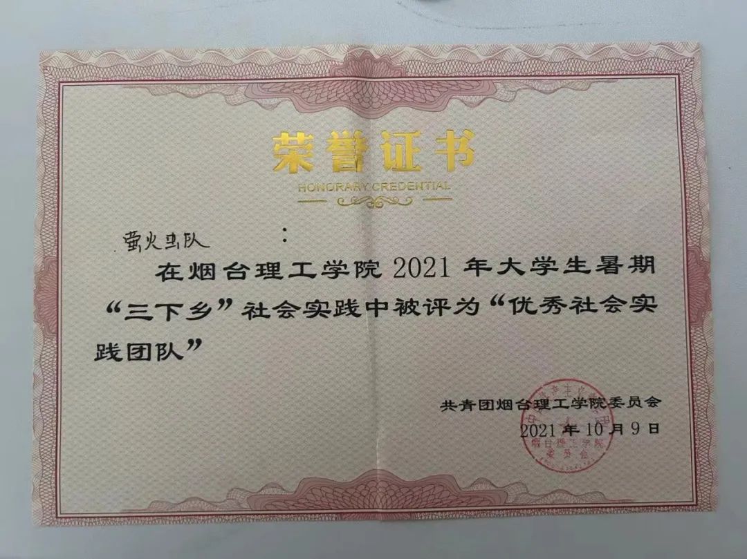 5.个人所在“萤火虫”实践队在2021年老员工暑期“三下乡”社会实践中被评为“优秀社会实践团队”;