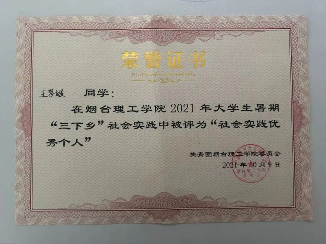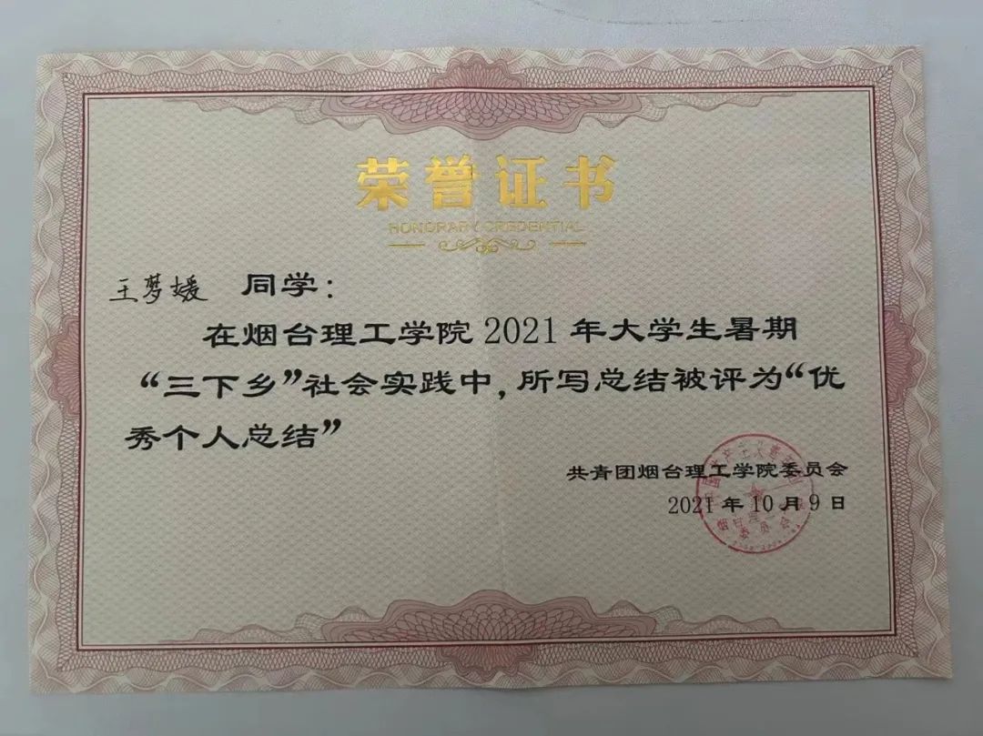 4.在2021年老员工暑期“三下乡”社会实践中被评为“社会实践优秀个人”;