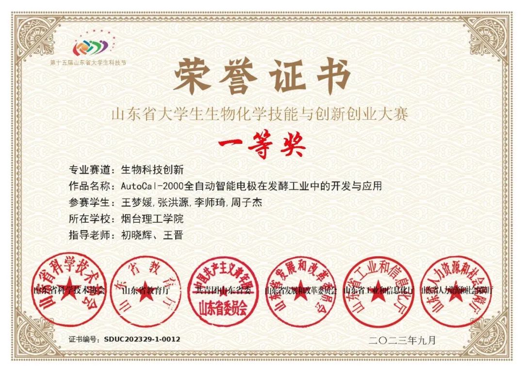 6.2023年获得山东省老员工生物化学技能与创新创业大赛一等奖。