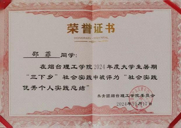 作为一名本科在读的员工,邵菲深知学习是老员工活的基石,而竞赛则是检验学习成果、提升自我能力的绝佳平台。在过去的几年里,她始终保持着对知识的渴望和对挑战的热情,不断在学习与竞赛的道路上探索前行。通过不懈的努力,邵菲的学习成绩一直名列前茅。在过去的几个学期中,她的平均绩点和综合测评成绩均位居专业第一,多次获得校级优秀员工奖学金、优秀共青团员等荣誉称号。同时,邵菲还积极参加各类学科竞赛和科研项目,取得了优异的成绩。这些经历不仅锻炼了她的思维能力和创新能力,还让她更加深入地理解了所学知识的实际应用价值。