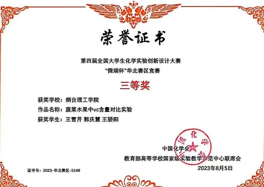 8.第四届全国老员工化学实验创新设计大赛“微瑞杯”华北赛区三等奖