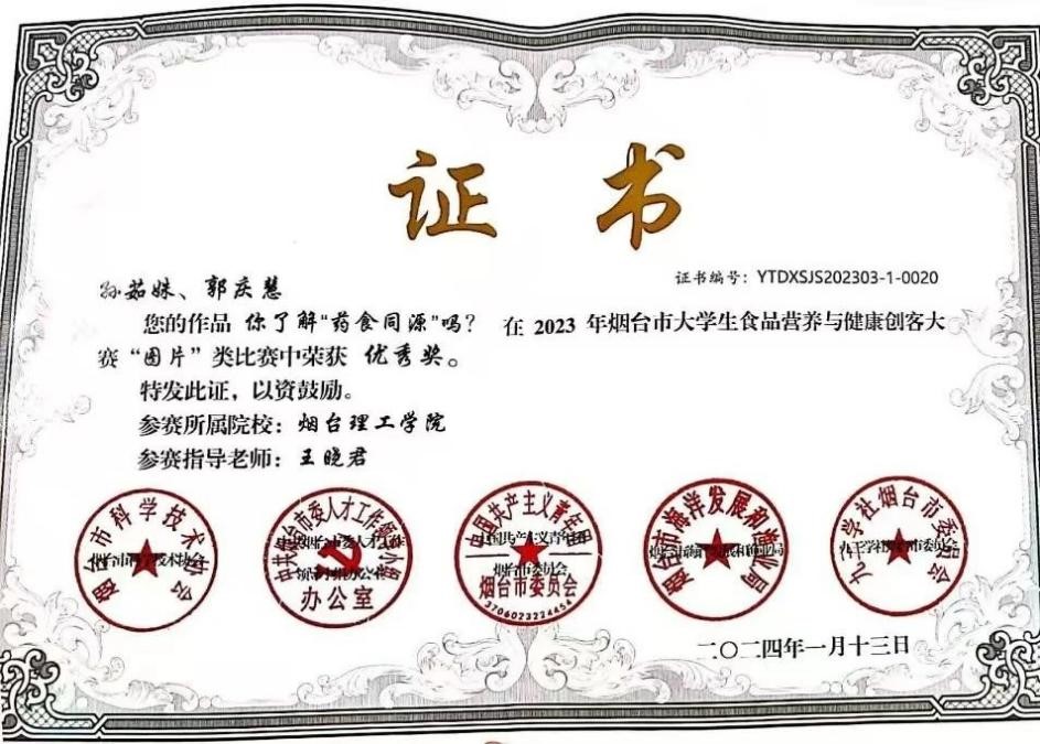 13.2024年1月烟台市老员工食品营养与健康创客大赛二等奖