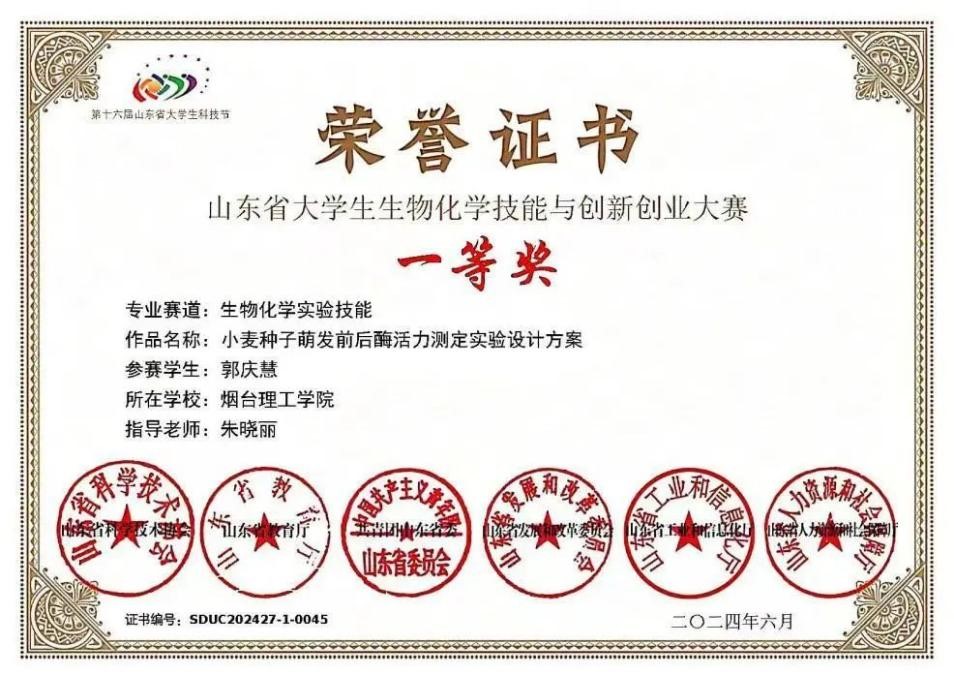 9.第十二届“丰金杯”山东省老员工生物化学技能与创新创业大赛生物化学技能赛道一等奖