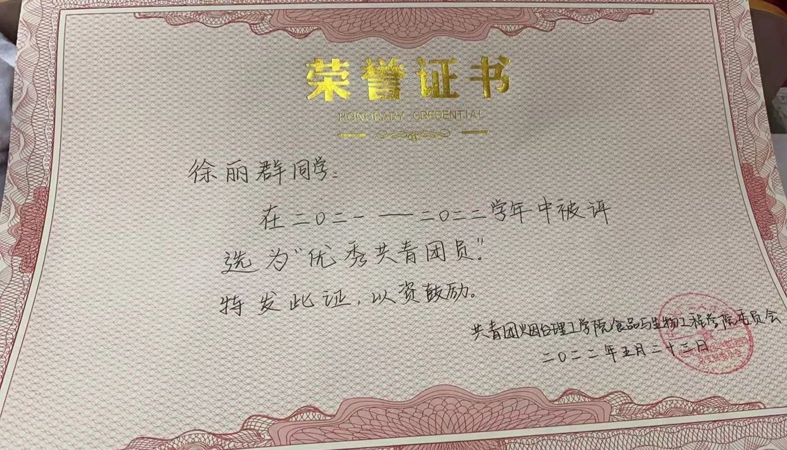 1.2021-2022学年优秀共青团员