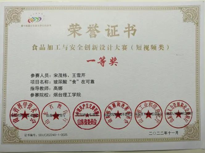 4.2023年9月第十五届“山东省老员工科技节”之“第十一届山东省老员工生物化学技能与创新创业大赛”创新创业优秀壁报奖5.2023年9月哈哈体育“食影”最具影响力奖