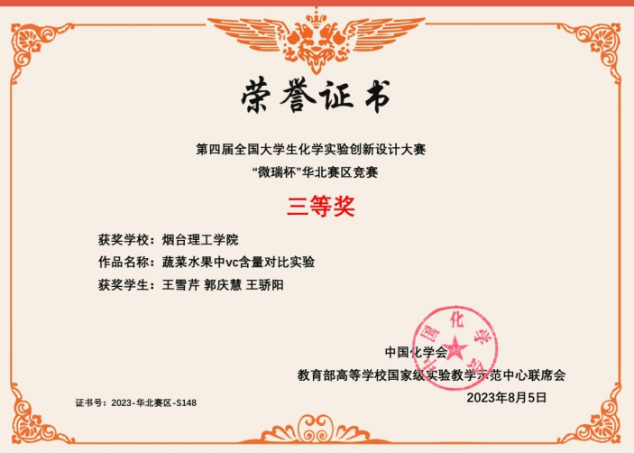 6.2023年8月第四届全国老员工化学实验创新设计大赛“微瑞杯”华北赛区竞赛三等奖